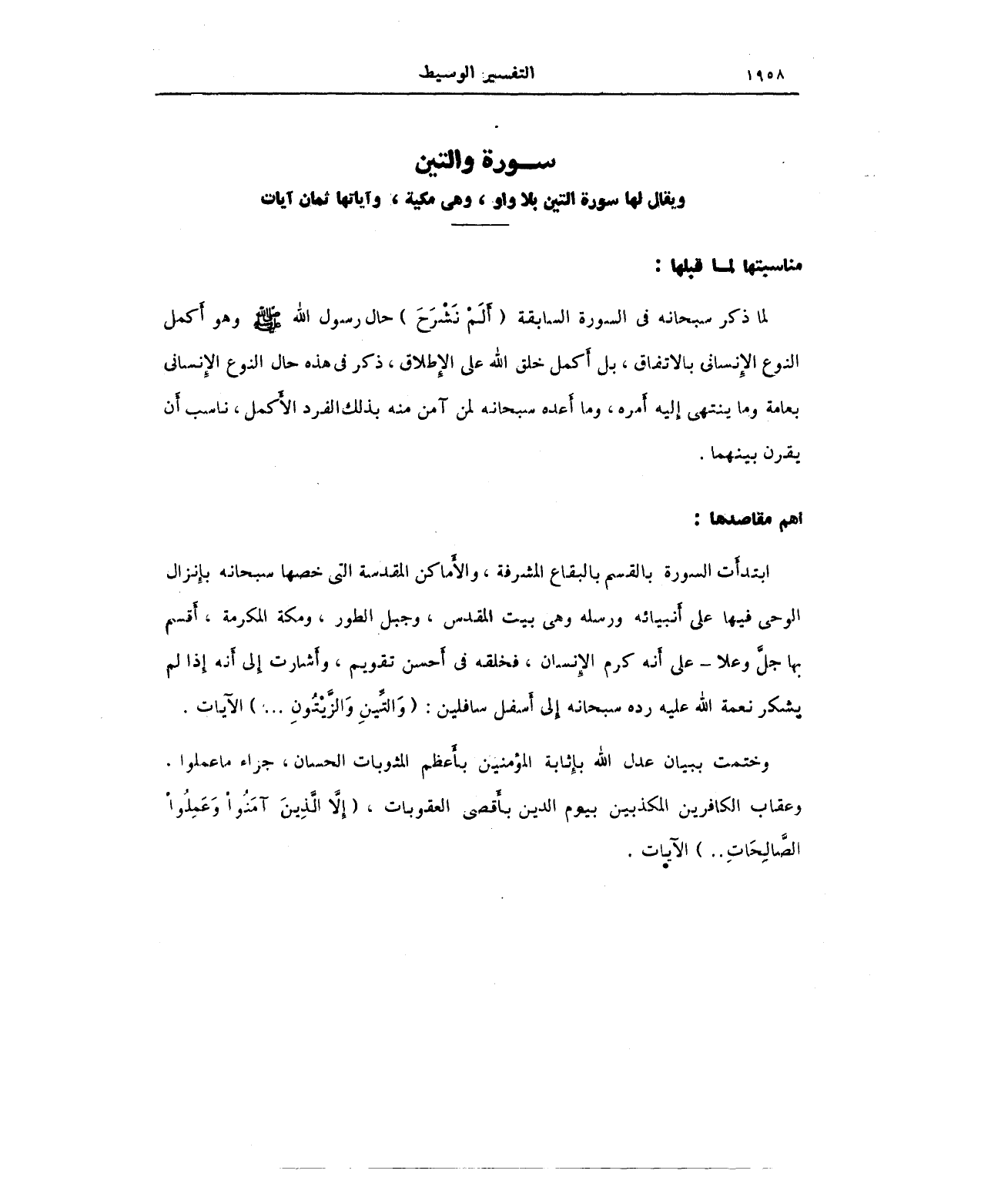 ويقال لها سورة التين بلا واو، وهي مكية، وآياتها ثمان آيات