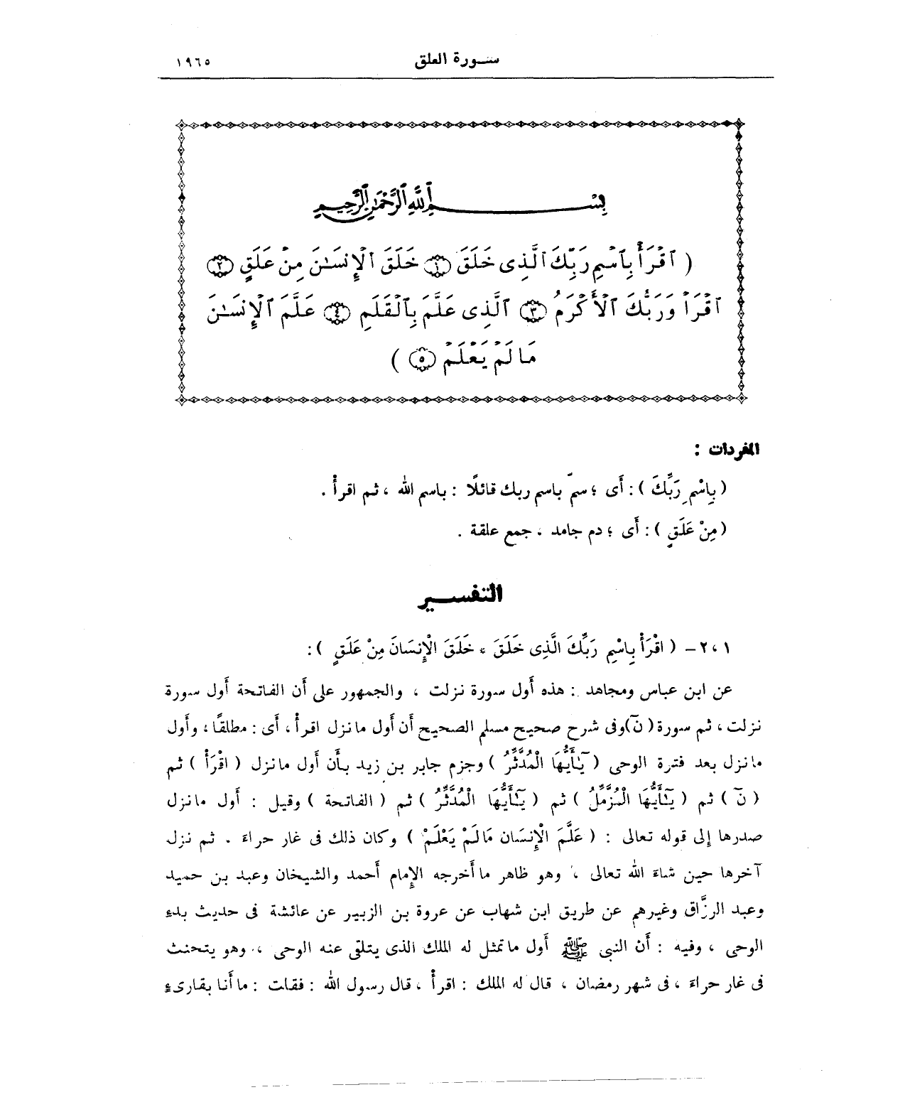 1، 2 - (اقْرَأْ بِاسْمِ رَبِّكَ الَّذِي خَلَقَ * خَلَقَ الإِنسَانَ مِنْ عَلَقٍ):