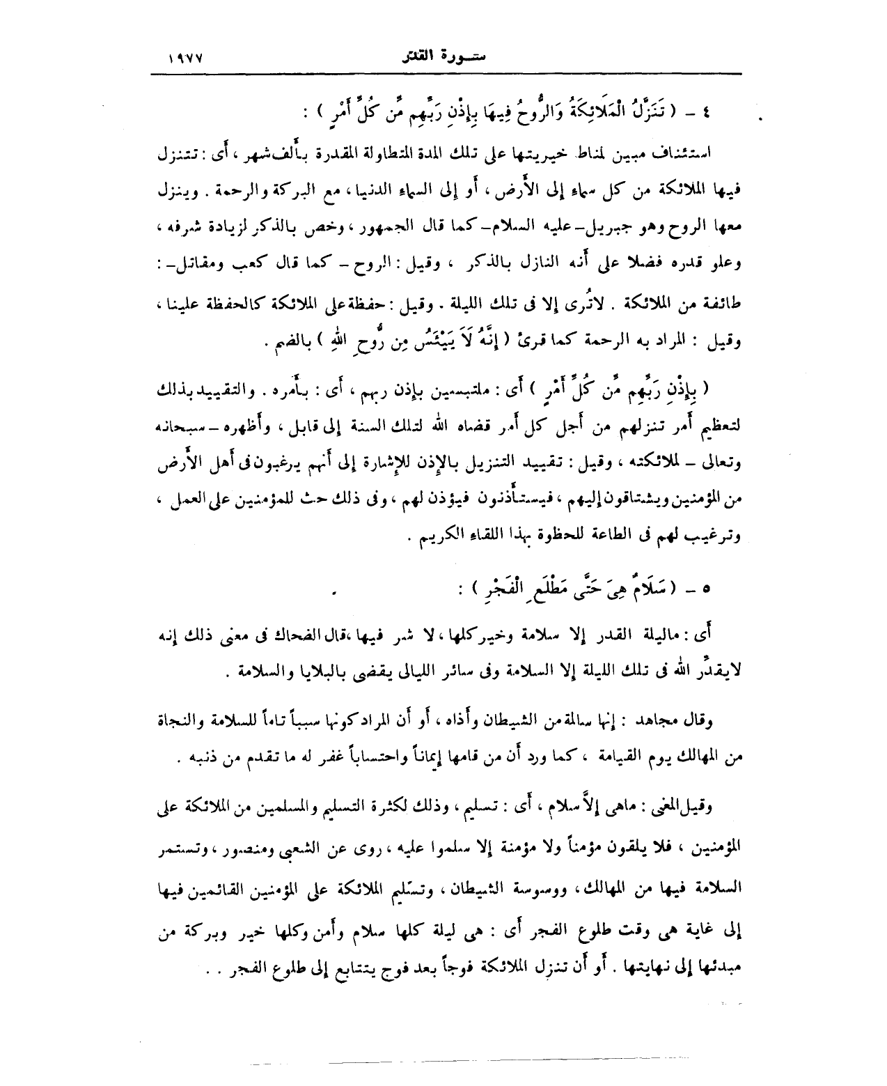 4 - (تَنَزَّلُ الْمَلائِكَةُ وَالرُّوحُ فِيهَا بِإِذْنِ رَبِّهِمْ مِنْ كُلِّ أَمْرٍ):