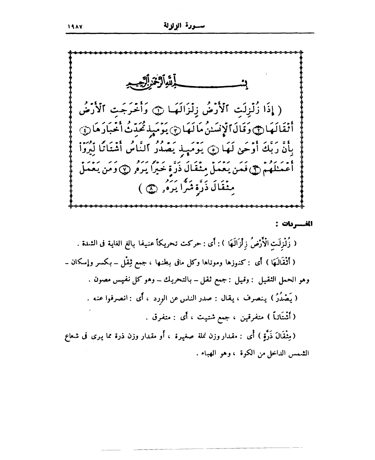 (زُلْزِلَتْ الأَرْضُ زِلْزَالَهَا): أَي: حركت تحريكًا عنيفا بالغ الغاية في الشدة.