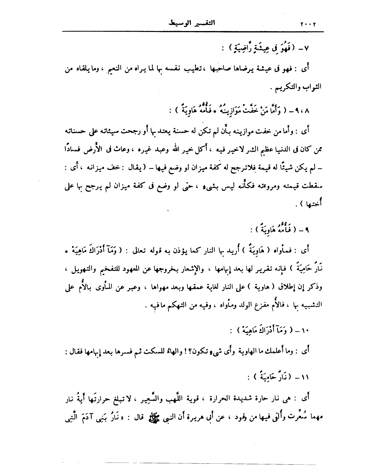 8 - 9 - (وأَمَّا مَنْ خَفَّتْ مَوَازِينُهُ* فأُمُّهُ هَاوِيَةٌ):
