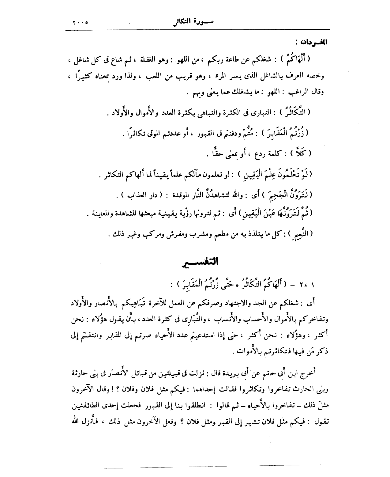 1 - 2 - (أَلْهَاكُمْ التَّكَاثُرُ * حَتَّى زُرْتُمْ الْمَقَابِرَ):