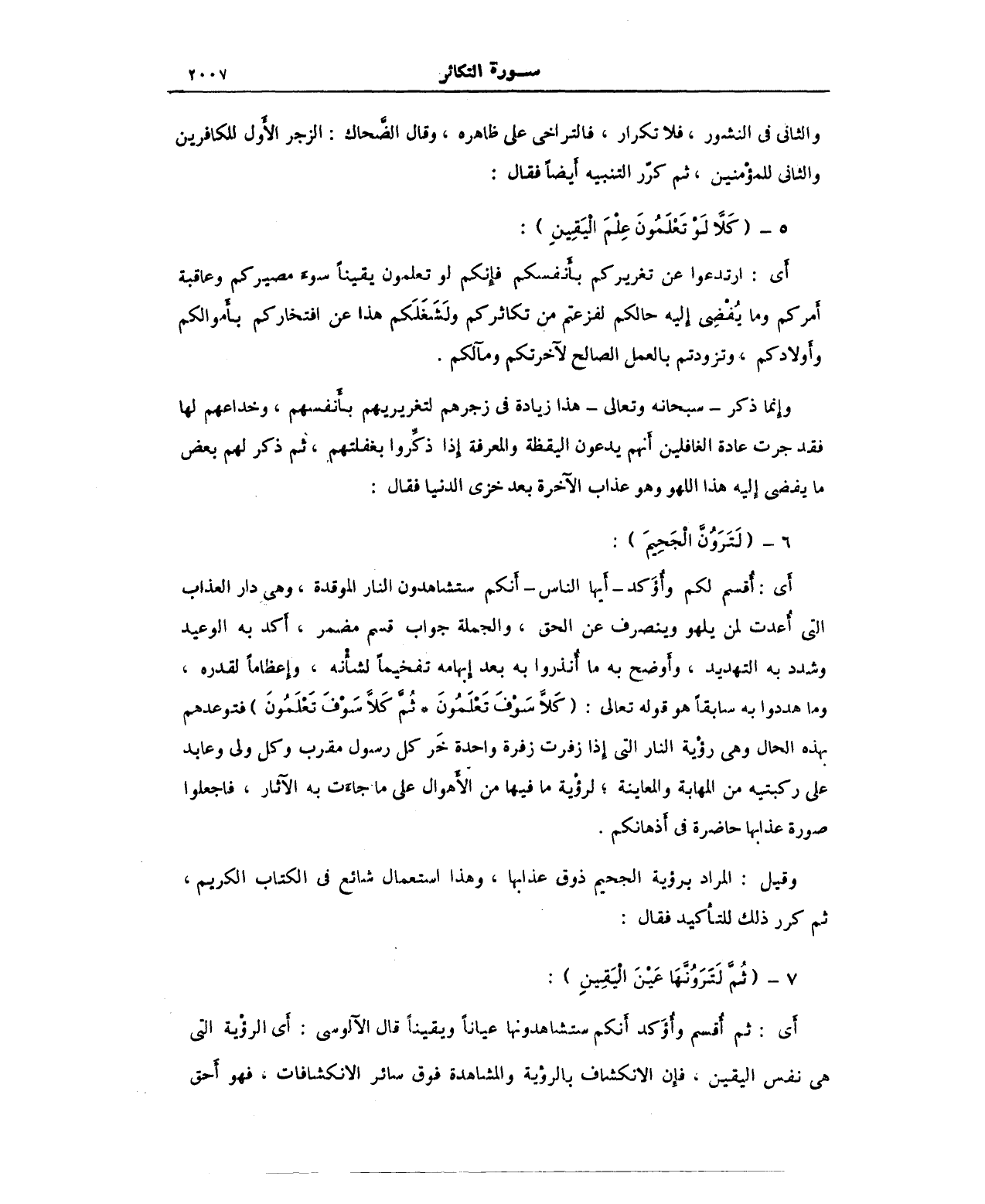 7 - (ثُمَّ لَتَرَوْنَهَا عَيْنَ الْيَقِينِ):