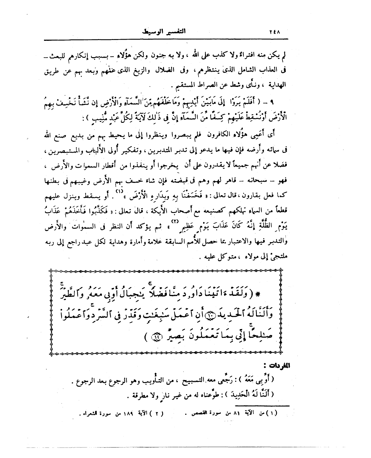 * {وَلَقَدْ آتَيْنَا دَاوُودَ مِنَّا فَضْلًا يَا جِبَالُ أَوِّبِي مَعَهُ وَالطَّيْرَ وَأَلَنَّا لَهُ الْحَدِيدَ (10) أَنِ اعْمَلْ سَابِغَاتٍ وَقَدِّرْ فِي السَّرْدِ وَاعْمَلُوا صَالِحًا إِنِّي بِمَا تَعْمَلُونَ بَصِيرٌ (11)}