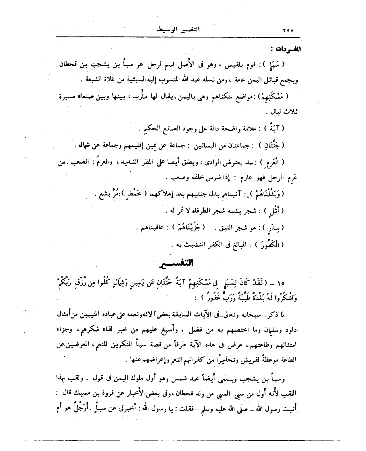 {سَبَإٍ}: قوم بلقيس، وهو في الأَصل اسم لرجل هو سبأ بن يشجب بن قحطان ويجمع قبائل اليمن عامة، ومن نسله عبد الله المنسوب إليه السبئية من غلاة الشيعة.