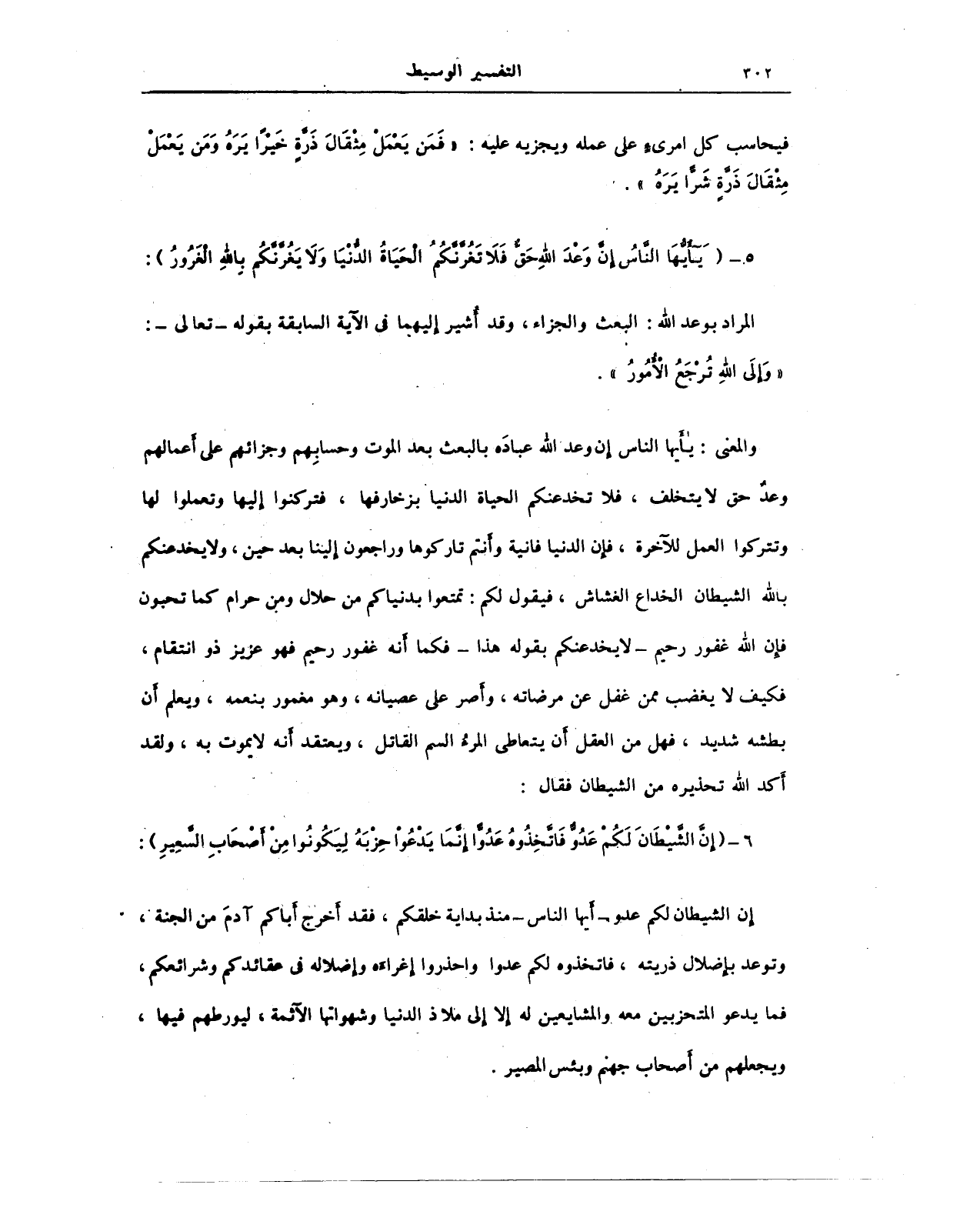 5 - {يَا أَيُّهَا النَّاسُ إِنَّ وَعْدَ اللَّهِ حَقٌّ فَلَا تَغُرَّنَّكُمُ الْحَيَاةُ الدُّنْيَا وَلَا يَغُرَّنَّكُمْ بِاللَّهِ الْغَرُورُ}: