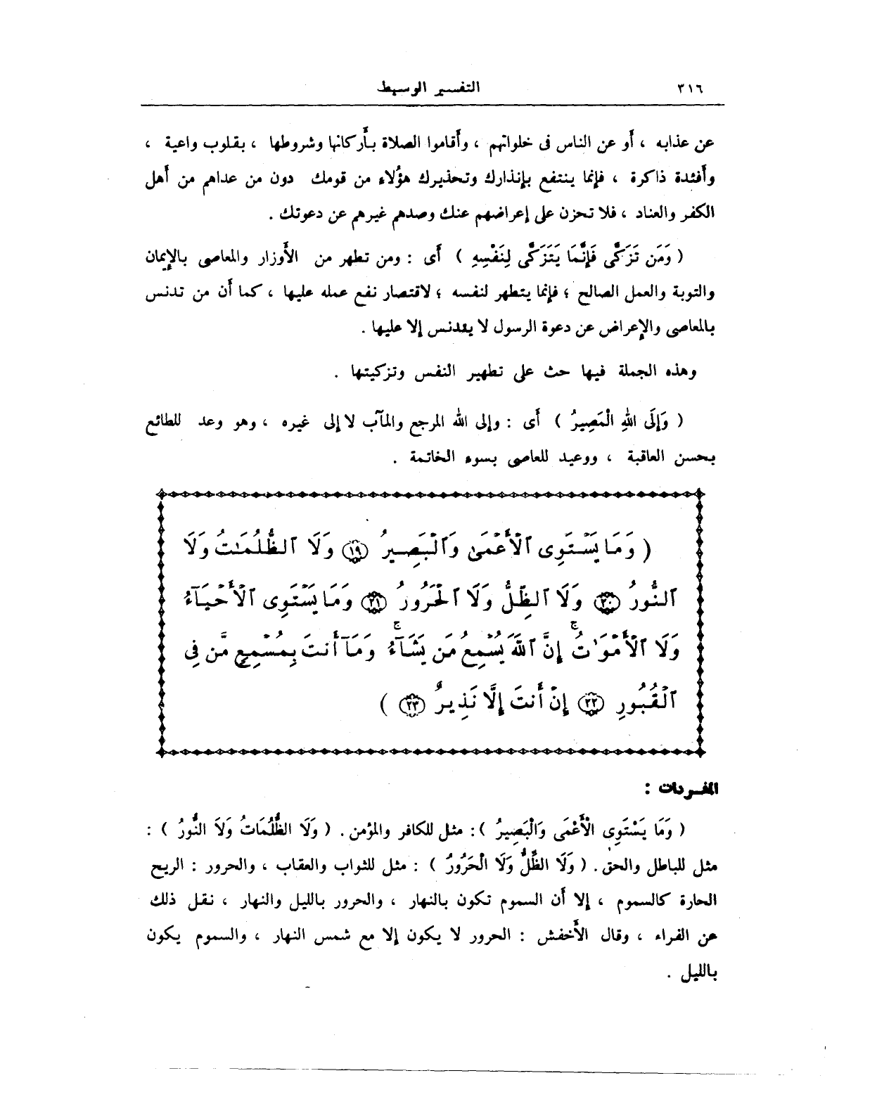 {وَمَا يَسْتَوِي الْأَعْمَى وَالْبَصِيرُ (19) وَلَا الظُّلُمَاتُ وَلَا النُّورُ (20) وَلَا الظِّلُّ وَلَا الْحَرُورُ (21) وَمَا يَسْتَوِي الْأَحْيَاءُ وَلَا الْأَمْوَاتُ إِنَّ اللَّهَ يُسْمِعُ مَنْ يَشَاءُ وَمَا أَنْتَ بِمُسْمِعٍ مَنْ فِي الْقُبُورِ (22) إِنْ أَنْتَ إِلَّا نَذِيرٌ}
