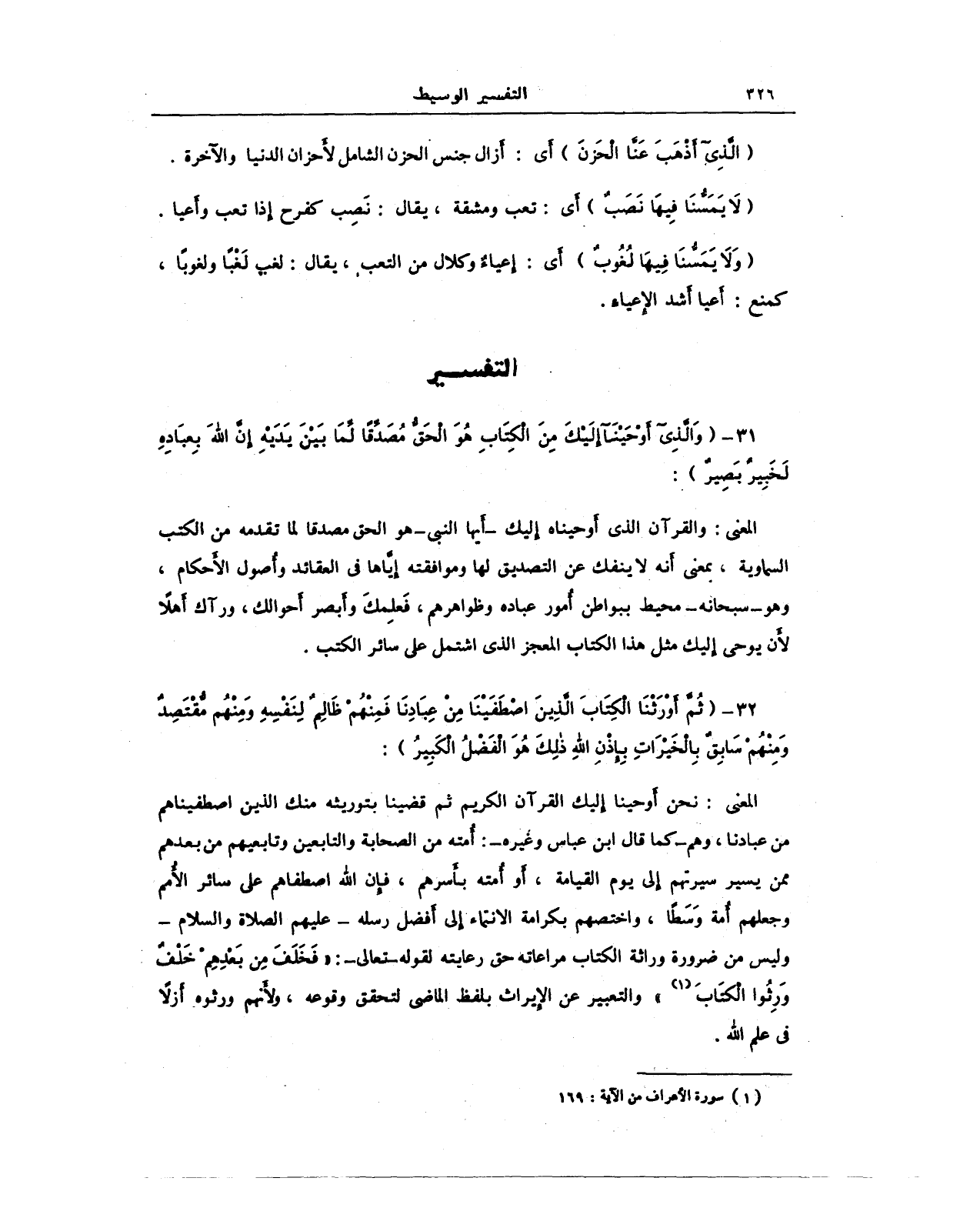 32 - {ثُمَّ أَوْرَثْنَا الْكِتَابَ الَّذِينَ اصْطَفَيْنَا مِنْ عِبَادِنَا فَمِنْهُمْ ظَالِمٌ لِنَفْسِهِ وَمِنْهُمْ مُقْتَصِدٌ وَمِنْهُمْ سَابِقٌ بِالْخَيْرَاتِ بِإِذْنِ اللَّهِ ذَلِكَ هُوَ الْفَضْلُ الْكَبِيرُ}: