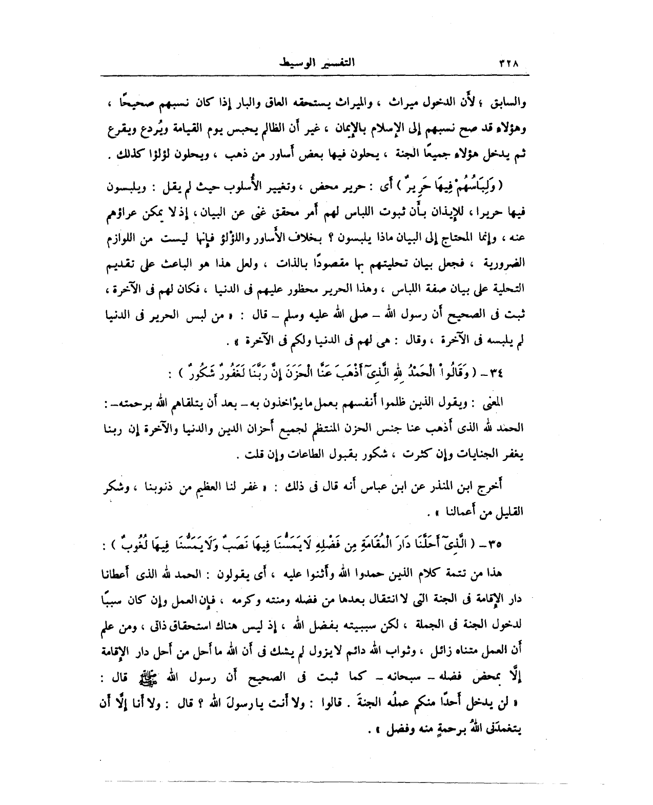 34 - {وَقَالُوا الْحَمْدُ لِلَّهِ الَّذِي أَذْهَبَ عَنَّا الْحَزَنَ إِنَّ رَبَّنَا لَغَفُورٌ شَكُورٌ}: