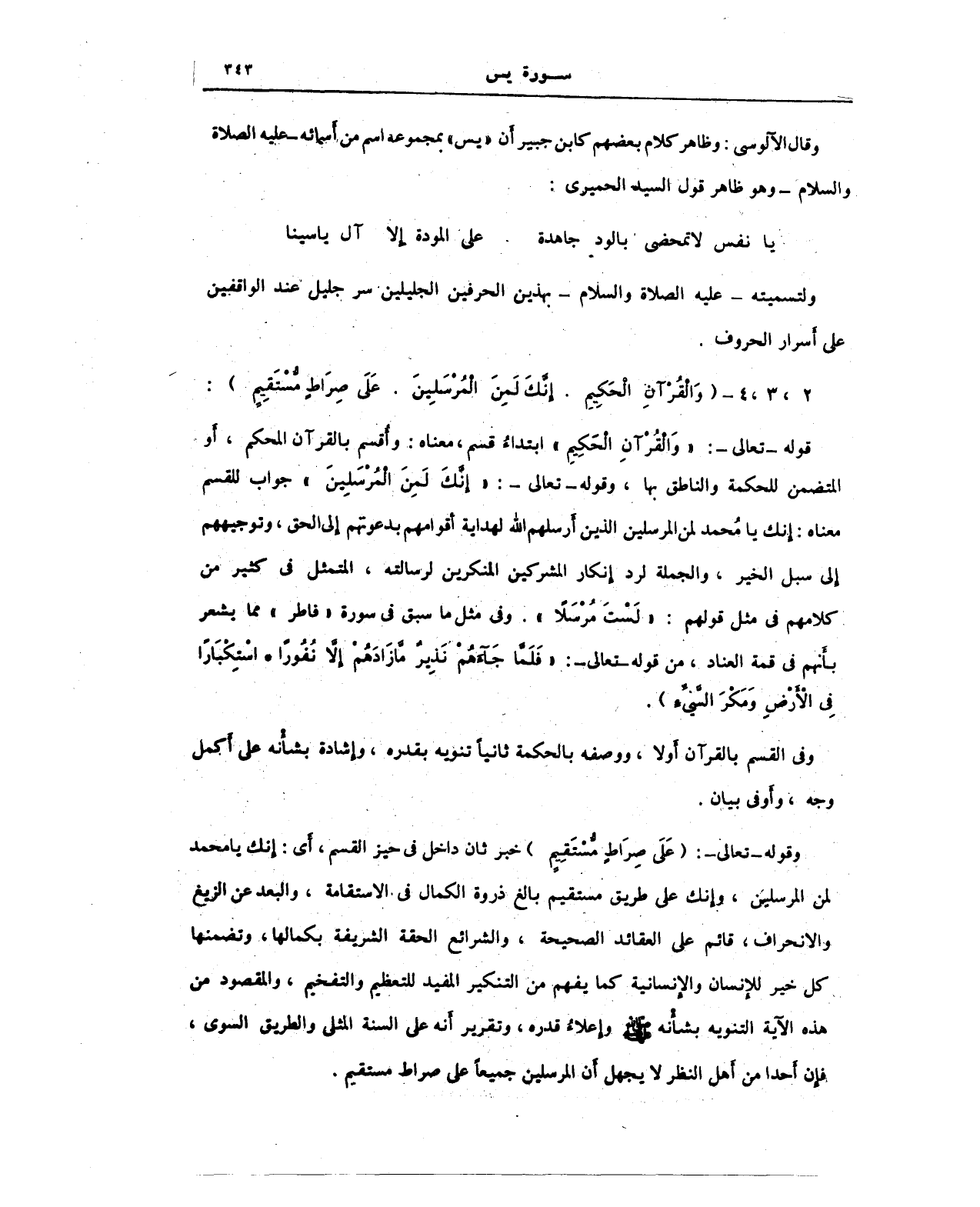 وقال الآلوسي: وظاهر كلام بعضهم كابن جبير أَن "يس" بمجموعه اسم من أسمائه عليه الصلاة والسلام - وهو ظاهر قول السيد الحميرى:
