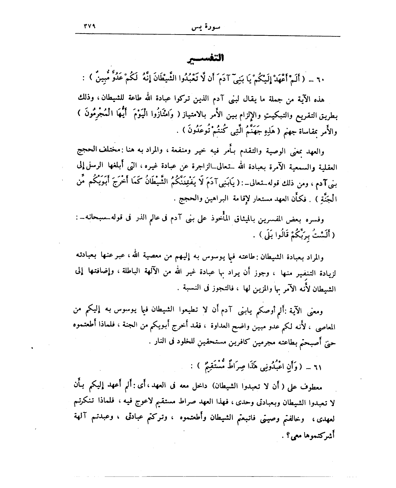 60 - {أَلَمْ أَعْهَدْ إِلَيْكُمْ يَا بَنِي آدَمَ أَنْ لَا تَعْبُدُوا الشَّيْطَانَ إِنَّهُ لَكُمْ عَدُوٌّ مُبِينٌ}: