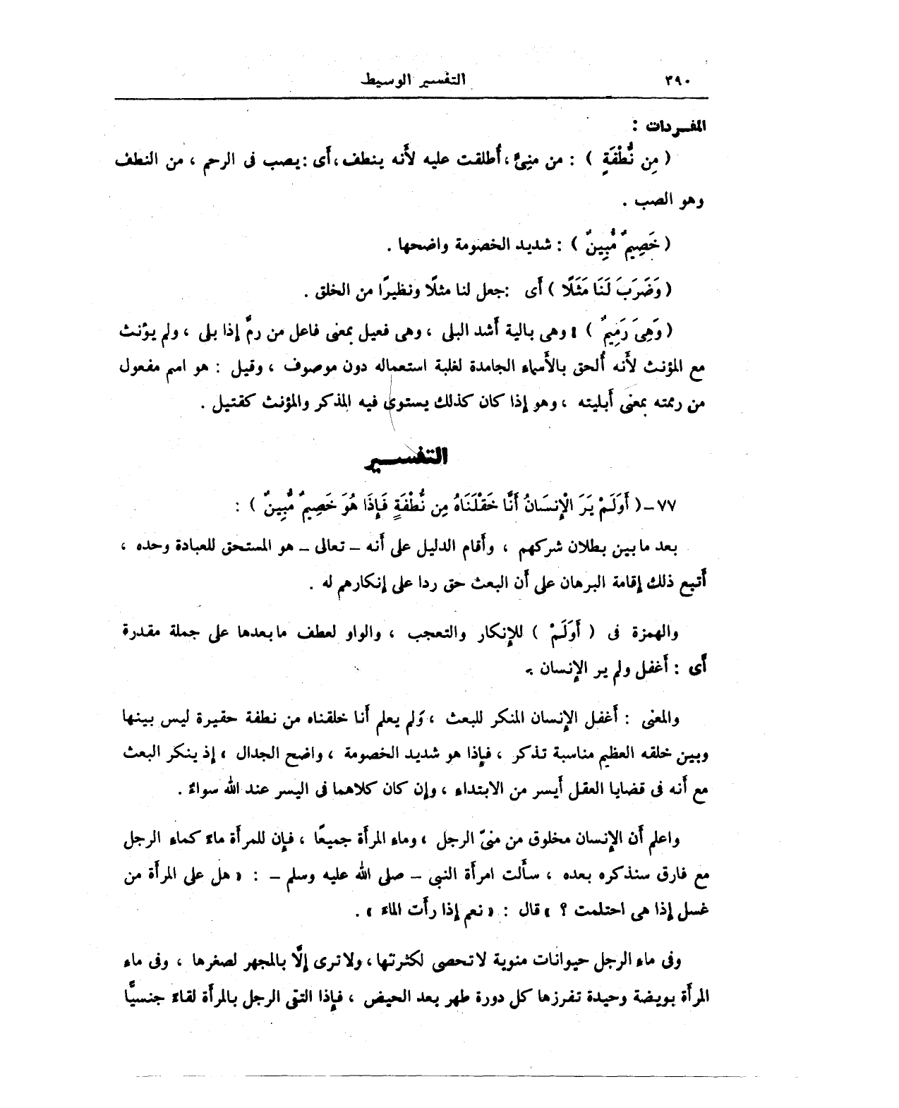 77 - {أَوَلَمْ يَرَ الْإِنْسَانُ أَنَّا خَلَقْنَاهُ مِنْ نُطْفَةٍ فَإِذَا هُوَ خَصِيمٌ مُبِينٌ}: