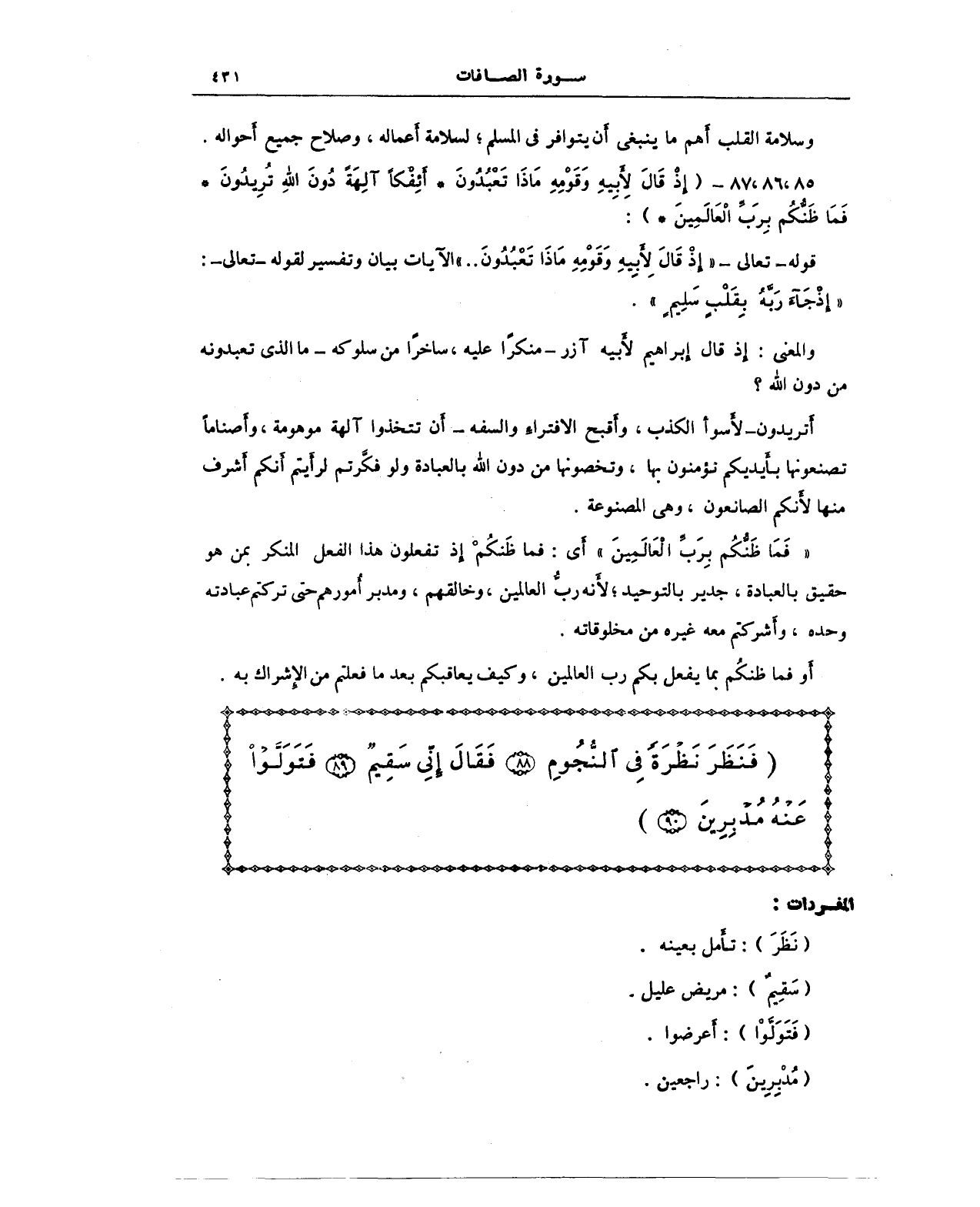 {فَنَظَرَ نَظْرَةً في النُّجُومِ (88) فَقَالَ إِنِّي سَقِيمٌ (89) فَتَوَلَّوْا عَنْهُ مُدْبِرِينَ (90)}