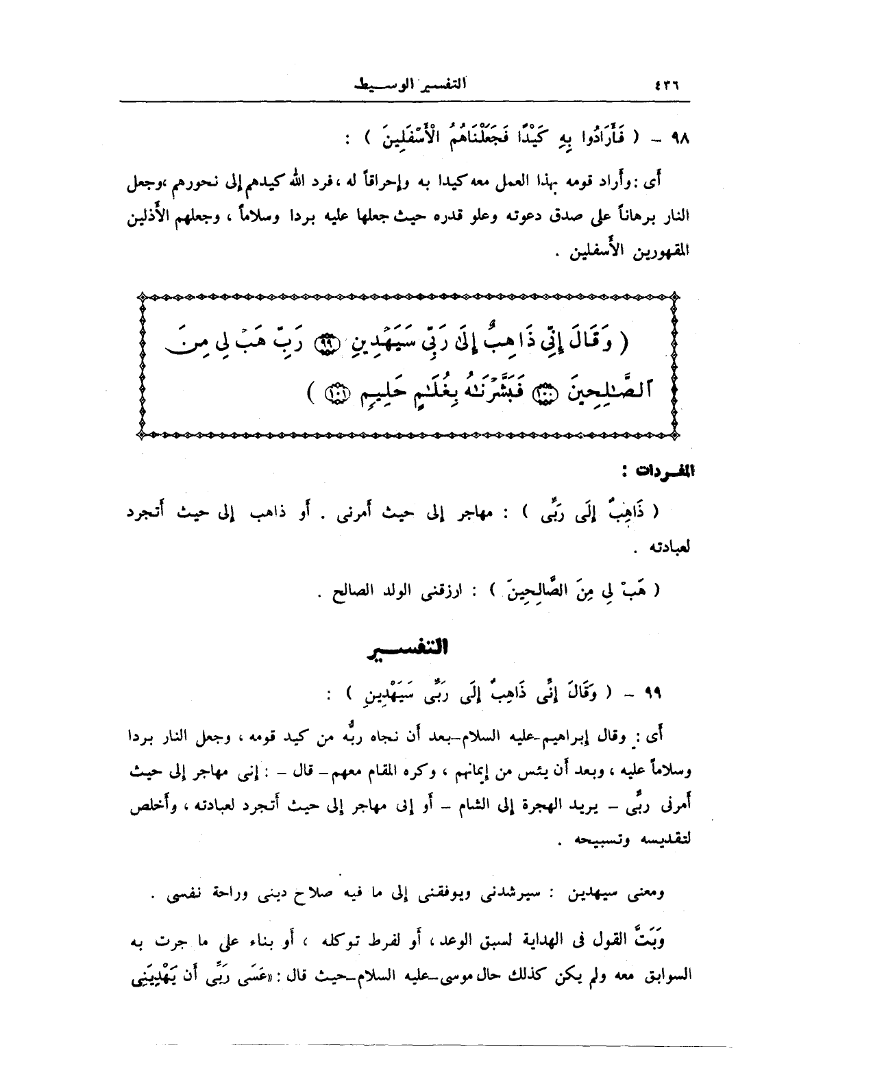 99 - {وَقَالَ إِنِّي ذَاهِبٌ إِلَى رَبِّي سَيَهْدِينِ}: