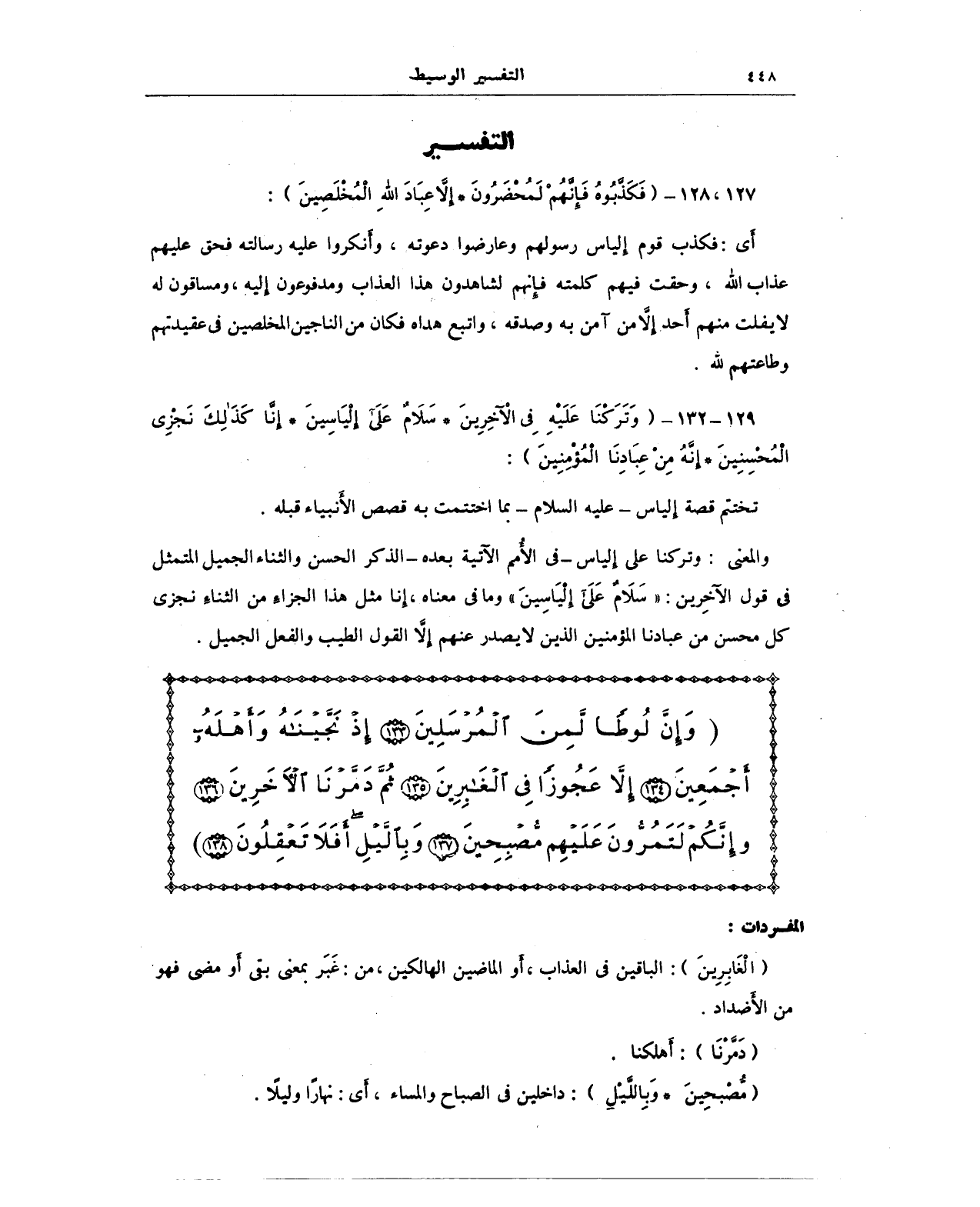 {وَإِنَّ لُوطًا لَمِنَ الْمُرْسَلِينَ (133) إِذْ نَجَّيْنَاهُ وَأَهْلَهُ أَجْمَعِينَ (134) إِلَّا عَجُوزًا فِي الْغَابِرِينَ (135) ثُمَّ دَمَّرْنَا الْآخَرِينَ (136) وَإِنَّكُمْ لَتَمُرُّونَ عَلَيْهِمْ مُصْبِحِينَ (137) وَبِاللَّيْلِ أَفَلَا تَعْقِلُونَ (138)}