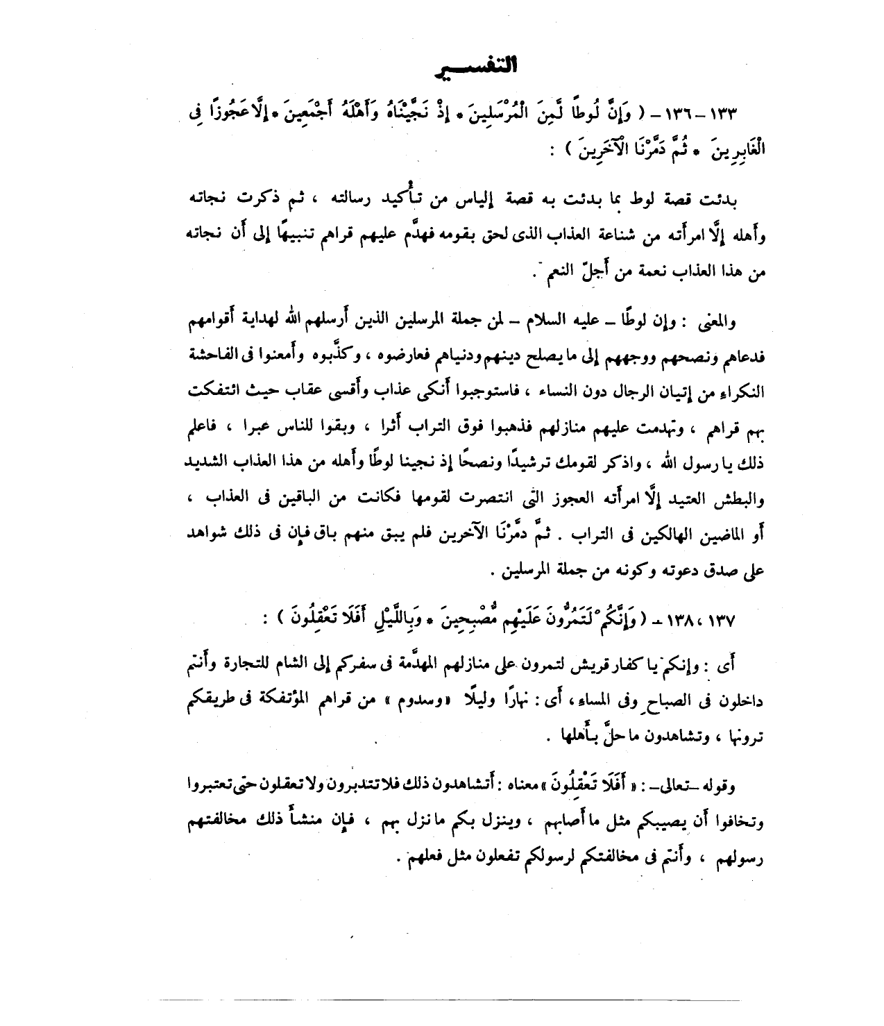 133 - 136 - {وَإِنَّ لُوطًا لَمِنَ الْمُرْسَلِينَ (133) إِذْ نَجَّيْنَاهُ وَأَهْلَهُ أَجْمَعِينَ (134) إِلَّا عَجُوزًا فِي الْغَابِرِينَ (135) ثُمَّ دَمَّرْنَا الْآخَرِينَ (136)}: