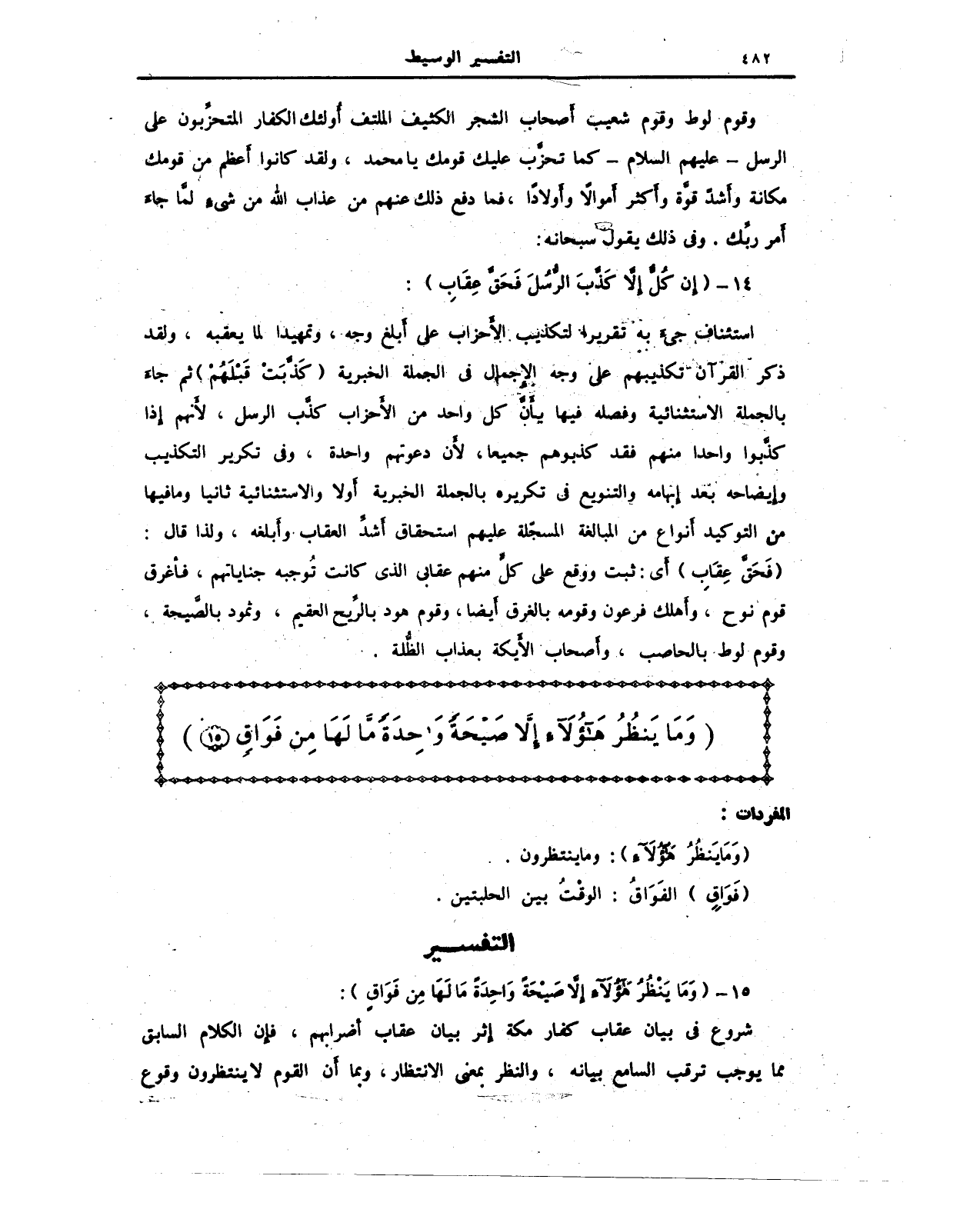 15 - {وَمَا يَنْظُرُ هَؤُلَاءِ إِلَّا صَيْحَةً وَاحِدَةً مَا لَهَا مِنْ فَوَاقٍ}: