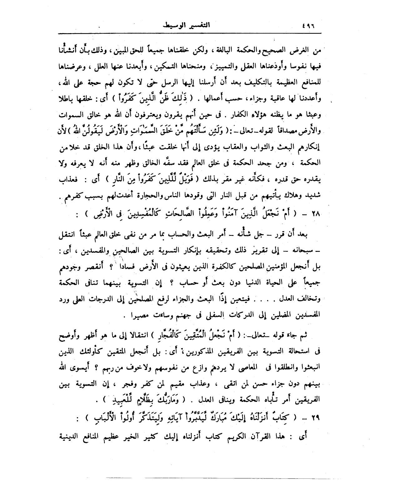 28 - {أَمْ نَجْعَلُ الَّذِينَ آمَنُوا وَعَمِلُوا الصَّالِحَاتِ كَالْمُفْسِدِينَ فِي الْأَرْضِ}: