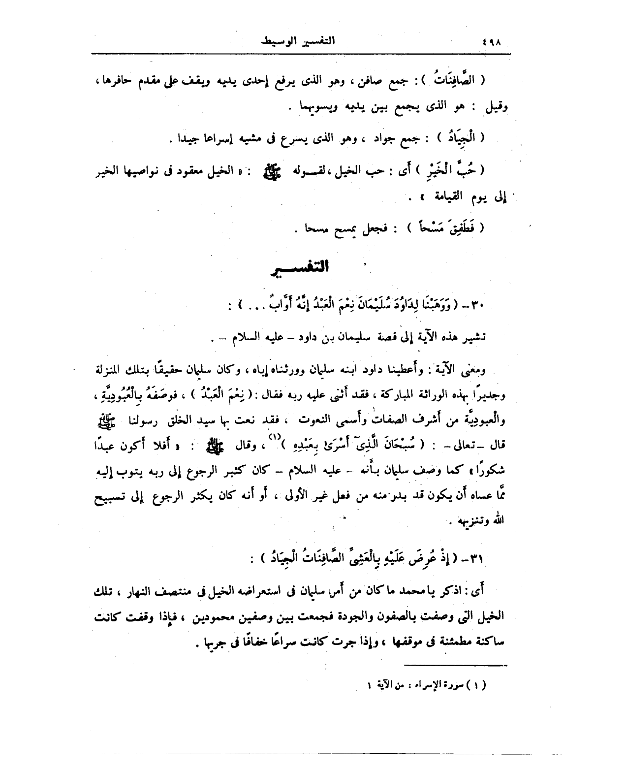 31 - {إِذْ عُرِضَ عَلَيْهِ بِالْعَشِيِّ الصَّافِنَاتُ الْجِيَادُ}: