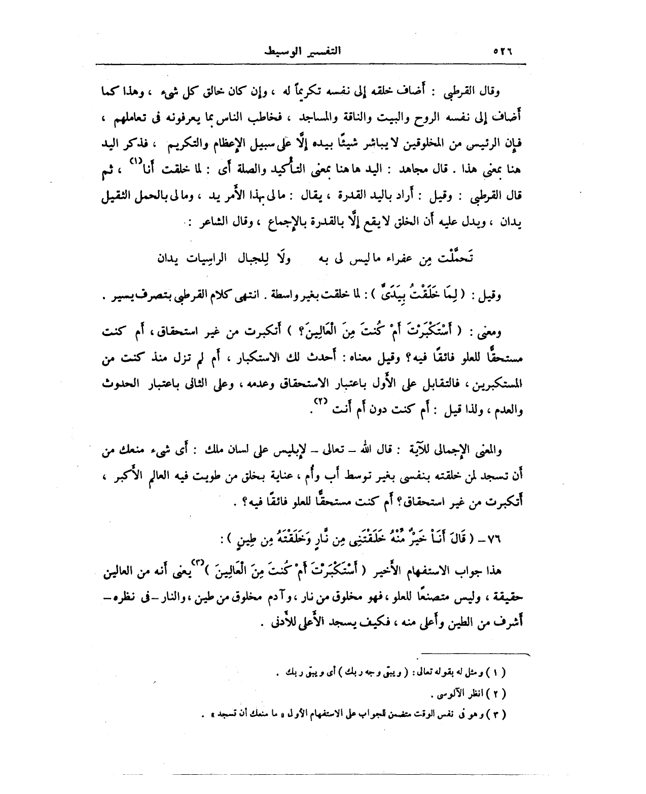 وقيل: {لِمَا خَلَقْتُ بِيَدَيَّ}: لما خلقت بغير واسطة. انتهى كلام القرطبي بتصرف يسير.
