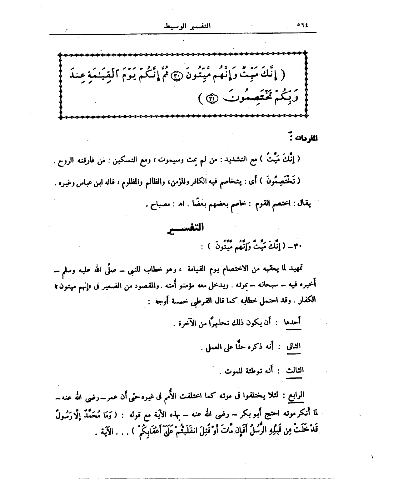 30 - {إِنَّكَ مَيِّتٌ وَإِنَّهُمْ مَيِّتُونَ}: