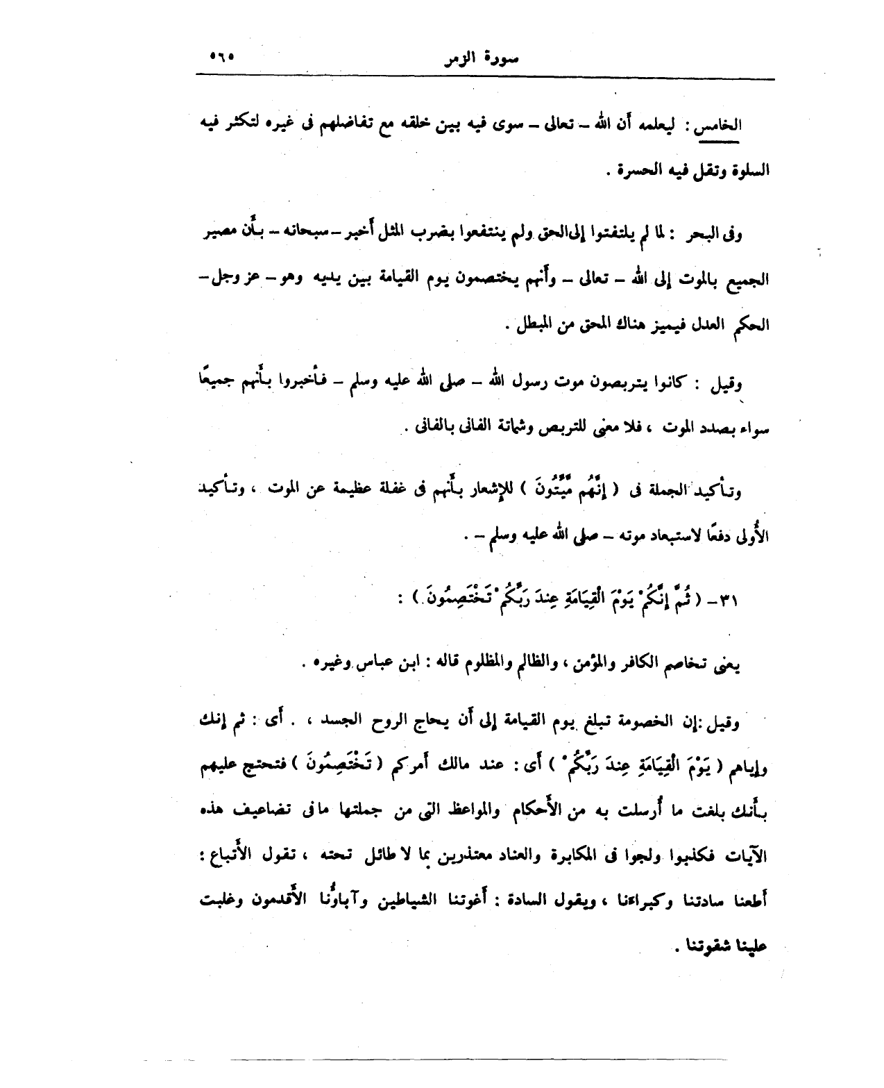 31 - {ثُمَّ إِنَّكُمْ يَوْمَ الْقِيَامَةِ عِنْدَ رَبِّكُمْ تَخْتَصِمُونَ}: