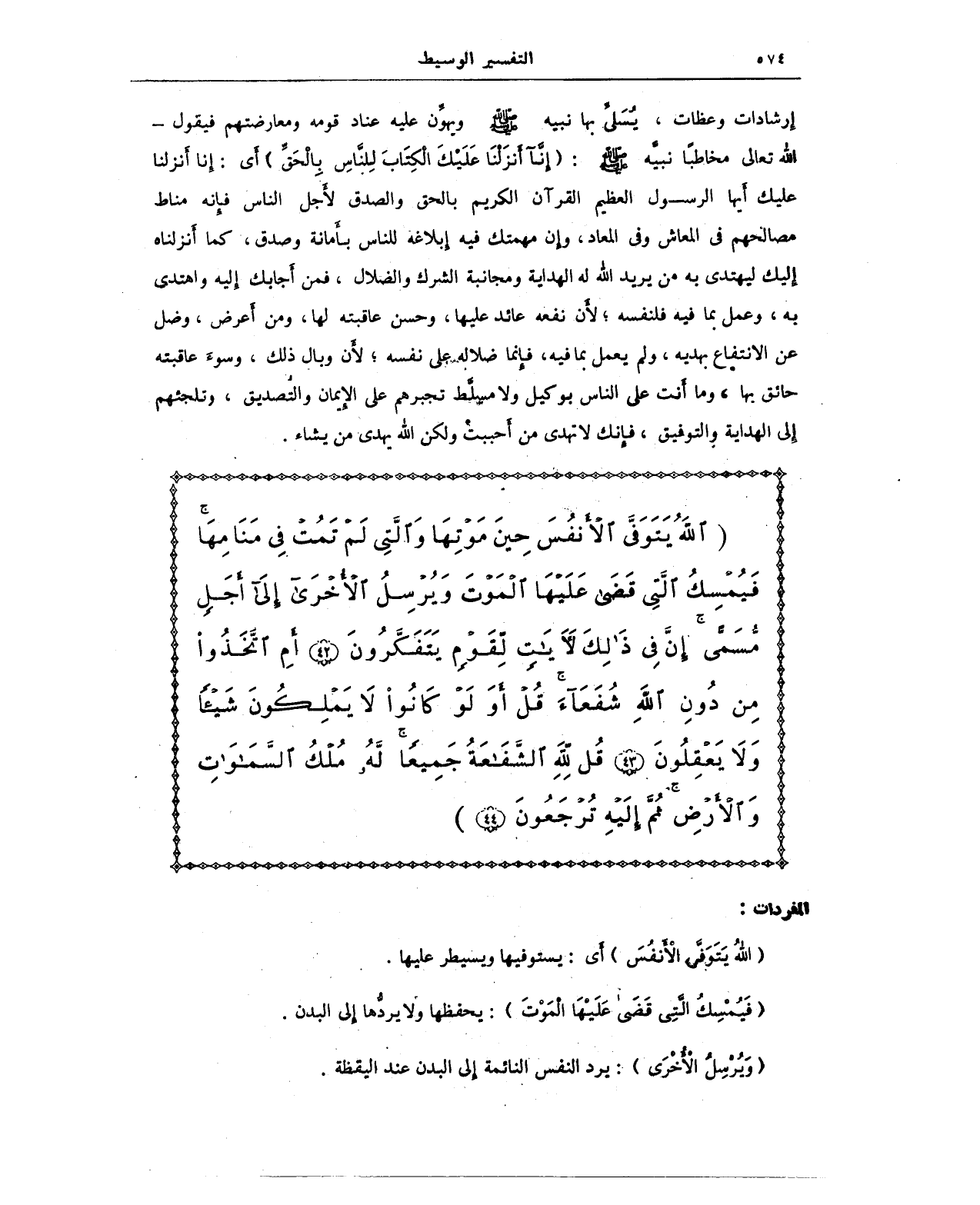 {اللَّهُ يَتَوَفَّى الْأَنْفُسَ حِينَ مَوْتِهَا وَالَّتِي لَمْ تَمُتْ فِي مَنَامِهَا فَيُمْسِكُ الَّتِي قَضَى عَلَيْهَا الْمَوْتَ وَيُرْسِلُ الْأُخْرَى إِلَى أَجَلٍ مُسَمًّى إِنَّ فِي ذَلِكَ لَآيَاتٍ لِقَوْمٍ يَتَفَكَّرُونَ (42) أَمِ اتَّخَذُوا مِنْ دُونِ اللَّهِ شُفَعَاءَ قُلْ أَوَلَوْ كَانُوا لَا يَمْلِكُونَ شَيْئًا وَلَا يَعْقِلُونَ (43) قُلْ لِلَّهِ الشَّفَاعَةُ جَمِيعًا لَهُ مُلْكُ السَّمَاوَاتِ وَالْأَرْضِ ثُمَّ إِلَيْهِ تُرْجَعُونَ (44)}