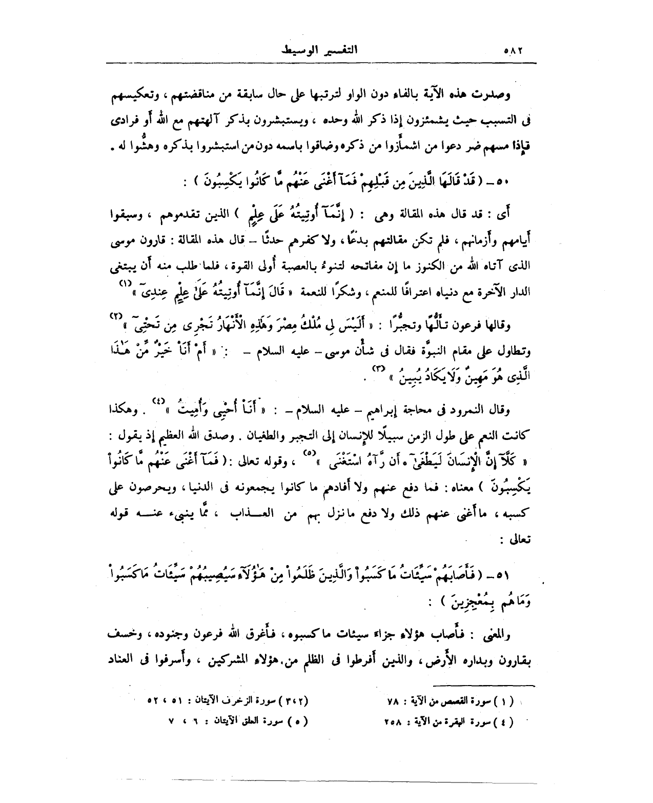 50 - {قَدْ قَالَهَا الَّذِينَ مِنْ قَبْلِهِمْ فَمَا أَغْنَى عَنْهُمْ مَا كَانُوا يَكْسِبُونَ}: