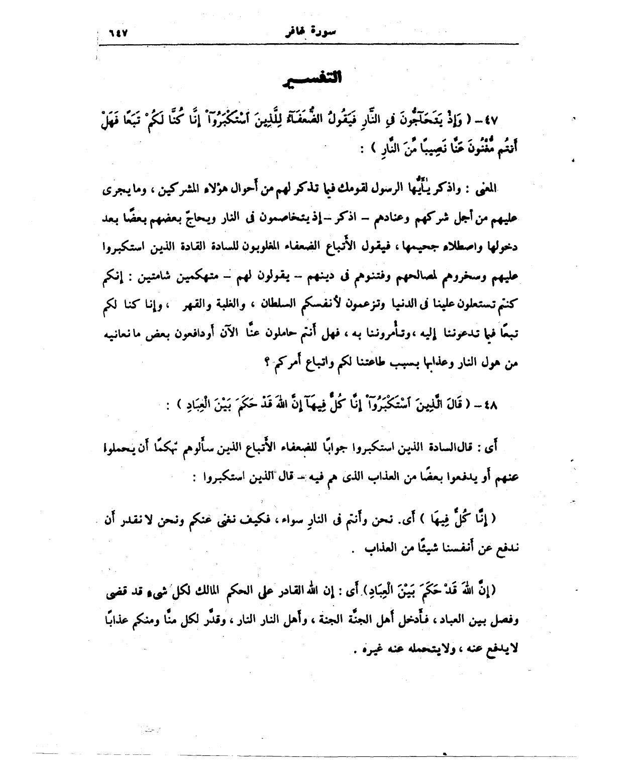 48 - {قَالَ الَّذِينَ اسْتَكْبَرُوا إِنَّا كُلٌّ فِيهَا إِنَّ اللَّهَ قَدْ حَكَمَ بَيْنَ الْعِبَادِ}: