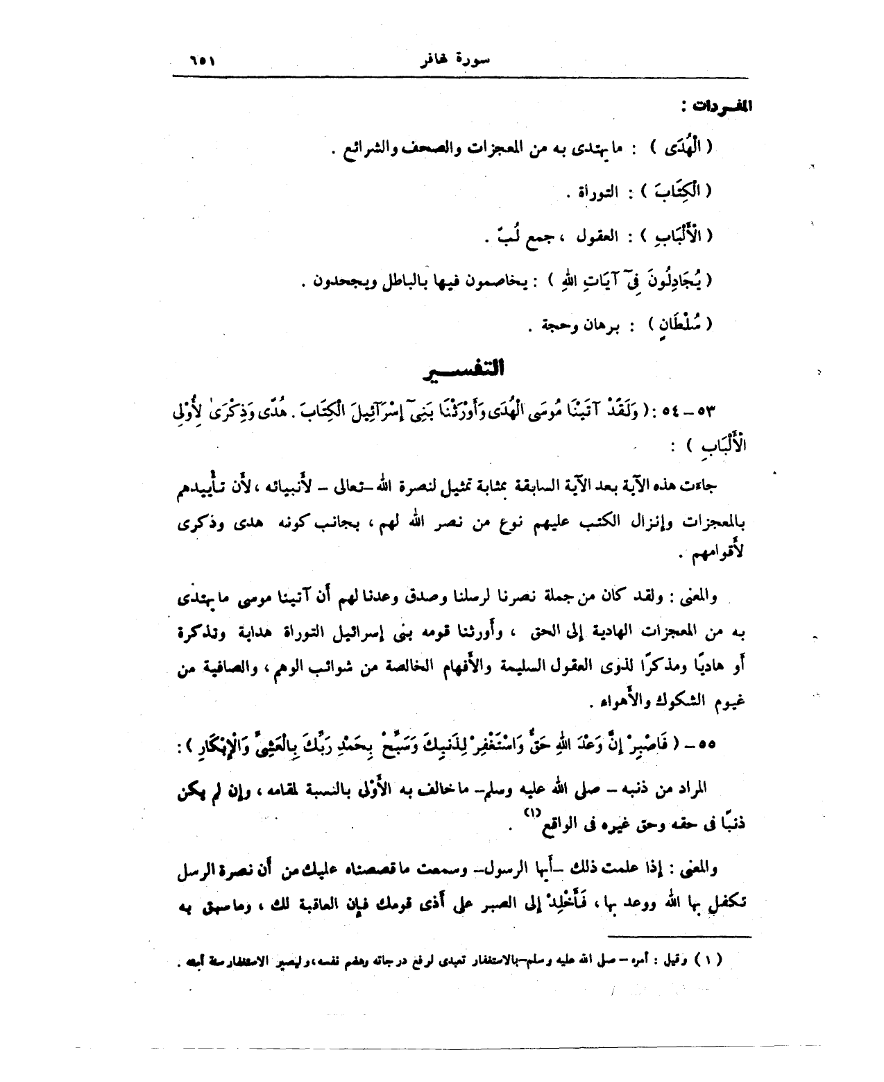 53 - 54: {وَلَقَدْ آتَيْنَا مُوسَى الْهُدَى وَأَوْرَثْنَا بَنِي إِسْرَائِيلَ الْكِتَابَ (53) هُدًى وَذِكْرَى لِأُولِي الْأَلْبَابِ}: