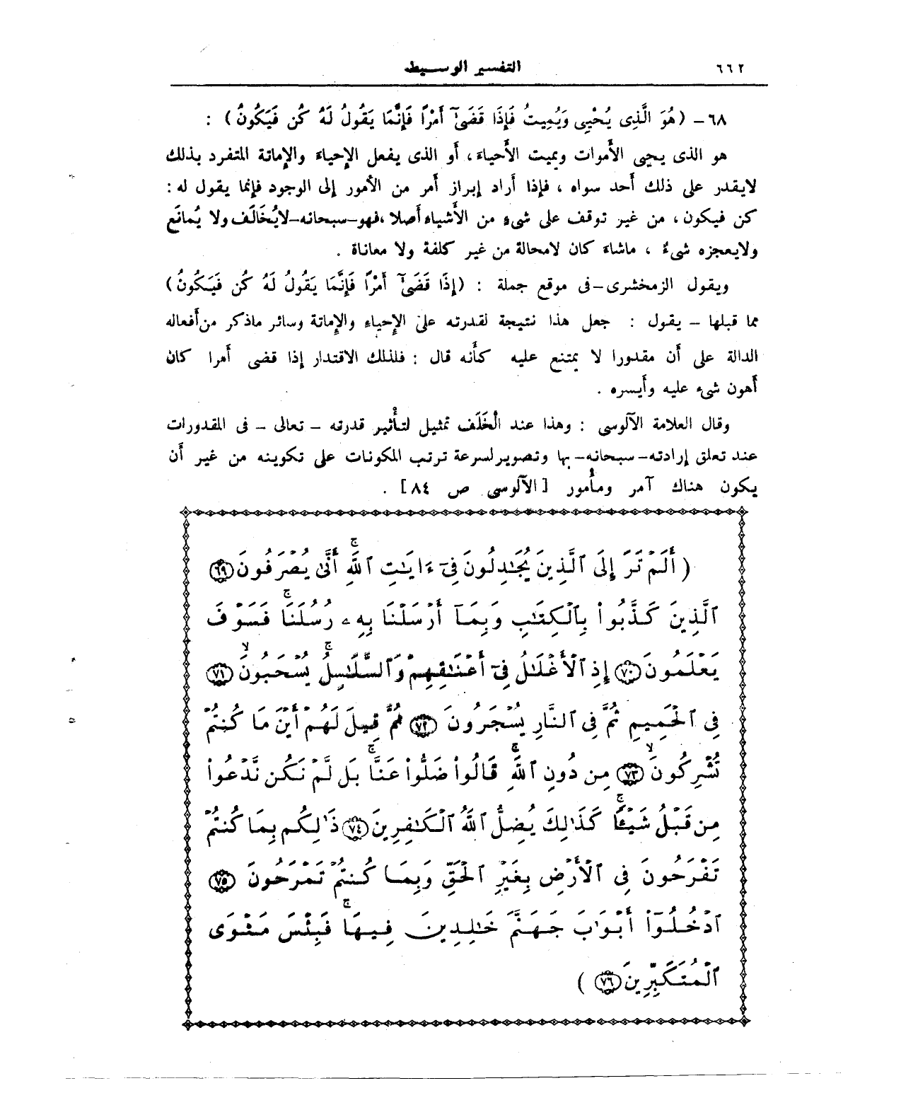 68 - {هُوَ الَّذِي يُحْيِي وَيُمِيتُ فَإِذَا قَضَى أَمْرًا فَإِنَّمَا يَقُولُ لَهُ كُنْ فَيَكُونُ}: