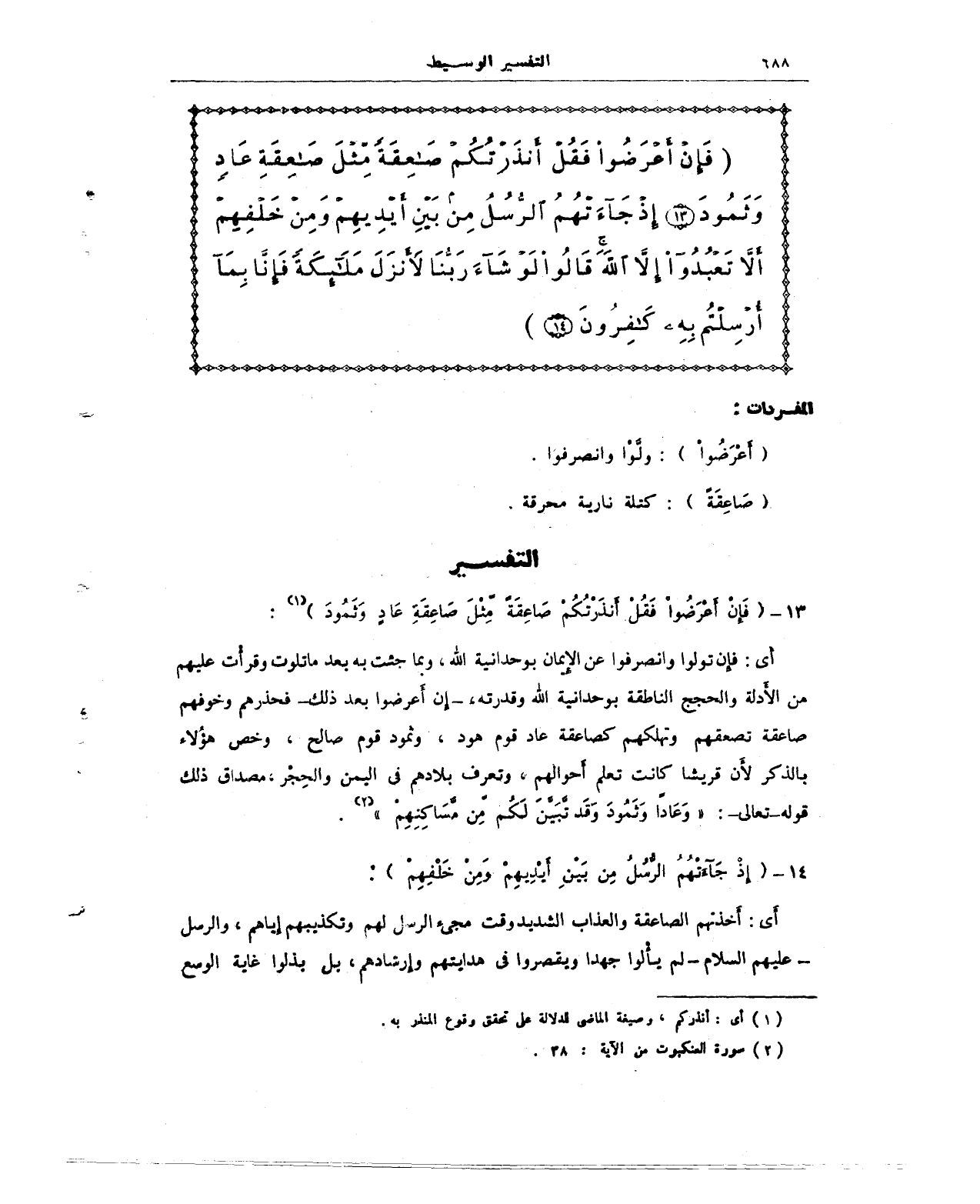 13 - {فَإِنْ أَعْرَضُوا فَقُلْ أَنْذَرْتُكُمْ صَاعِقَةً مِثْلَ صَاعِقَةِ عَادٍ وَثَمُودَ} (¬1):