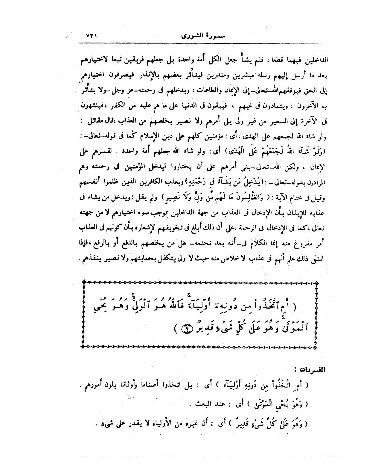 {أَمِ اتَّخَذُوا مِنْ دُونِهِ أَوْلِيَاءَ فَاللَّهُ هُوَ الْوَلِيُّ وَهُوَ يُحْيِ الْمَوْتَى وَهُوَ عَلَى كُلِّ شَيْءٍ قَدِيرٌ (9)}