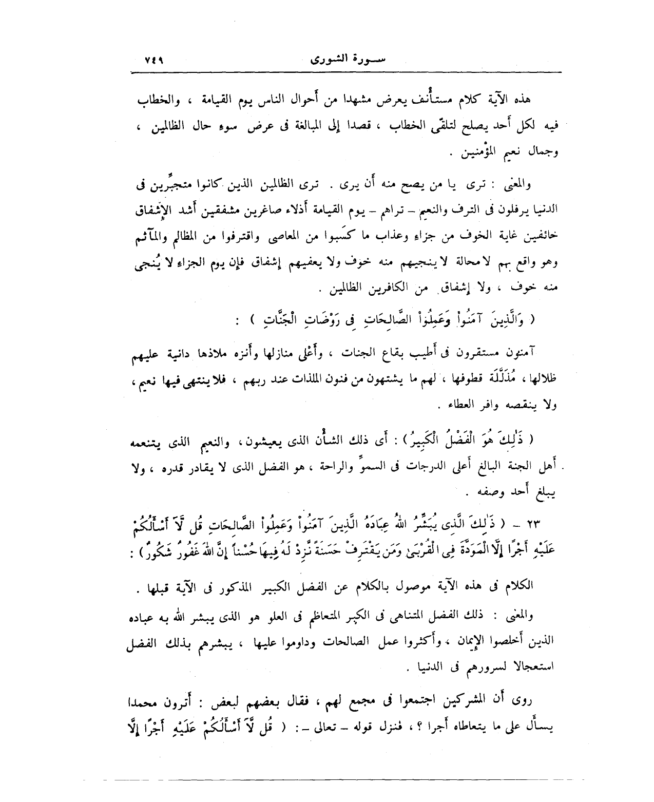 23 - {ذَلِكَ الَّذِي يُبَشِّرُ اللَّهُ عِبَادَهُ الَّذِينَ آمَنُوا وَعَمِلُوا الصَّالِحَاتِ قُلْ لَا أَسْأَلُكُمْ عَلَيْهِ أَجْرًا إِلَّا الْمَوَدَّةَ فِي الْقُرْبَى وَمَنْ يَقْتَرِفْ حَسَنَةً نَزِدْ لَهُ فِيهَا حُسْنًا إِنَّ اللَّهَ غَفُورٌ شَكُورٌ}: