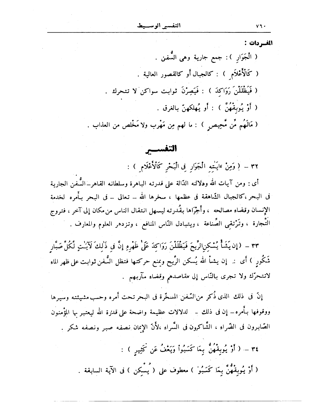 32 - : {وَمِنْ آيَاتِهِ الْجَوَارِ فِي الْبَحْرِ كَالْأَعْلَامِ}: