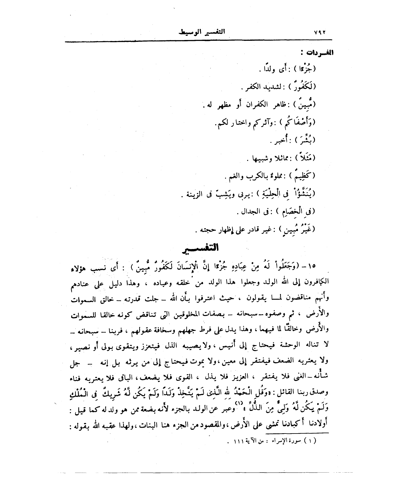 (¬1) سورة الإسراء: من الآية 111.