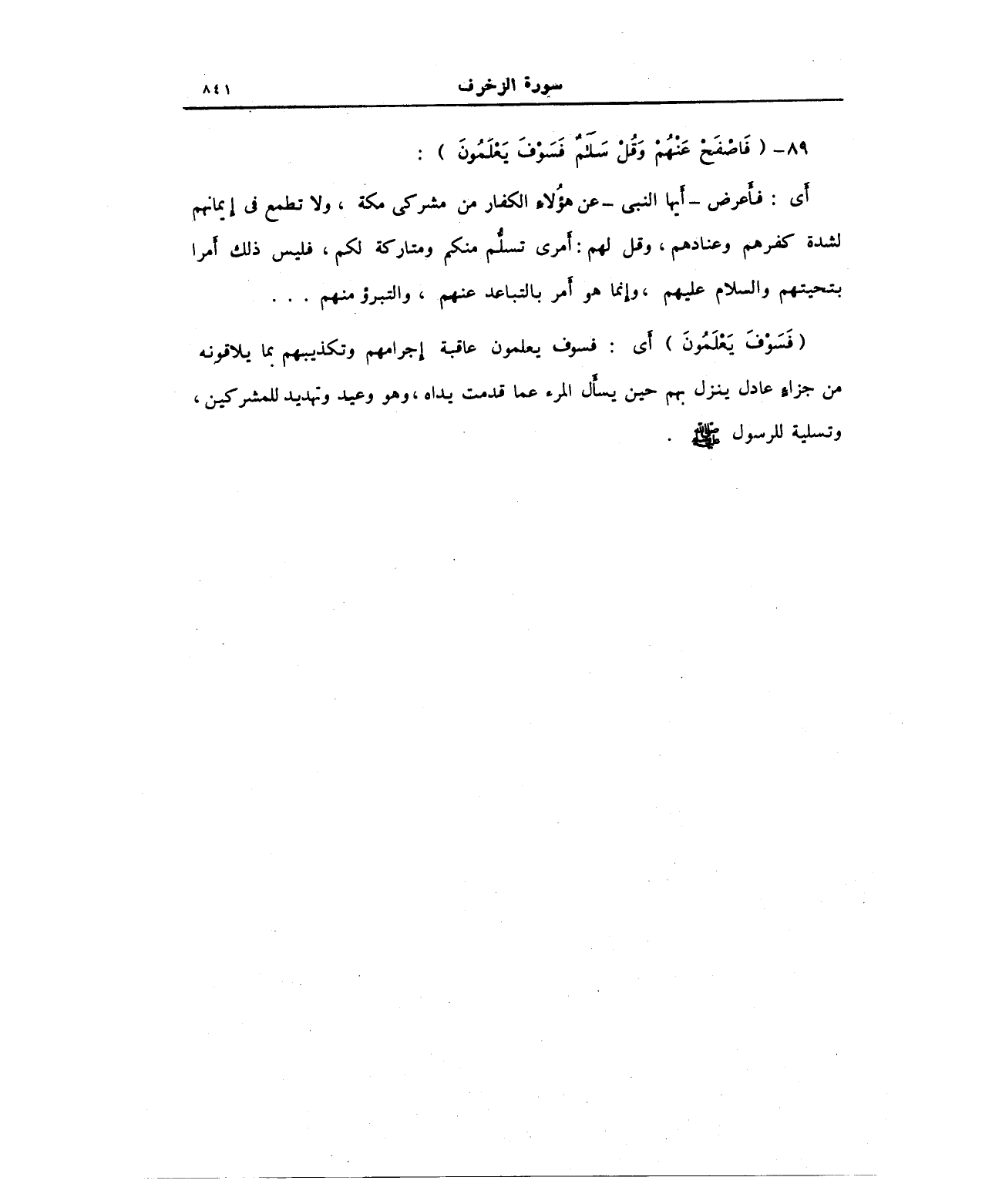 89 - {فَاصْفَحْ عَنْهُمْ وَقُلْ سَلَامٌ فَسَوْفَ يَعْلَمُونَ (89)}: