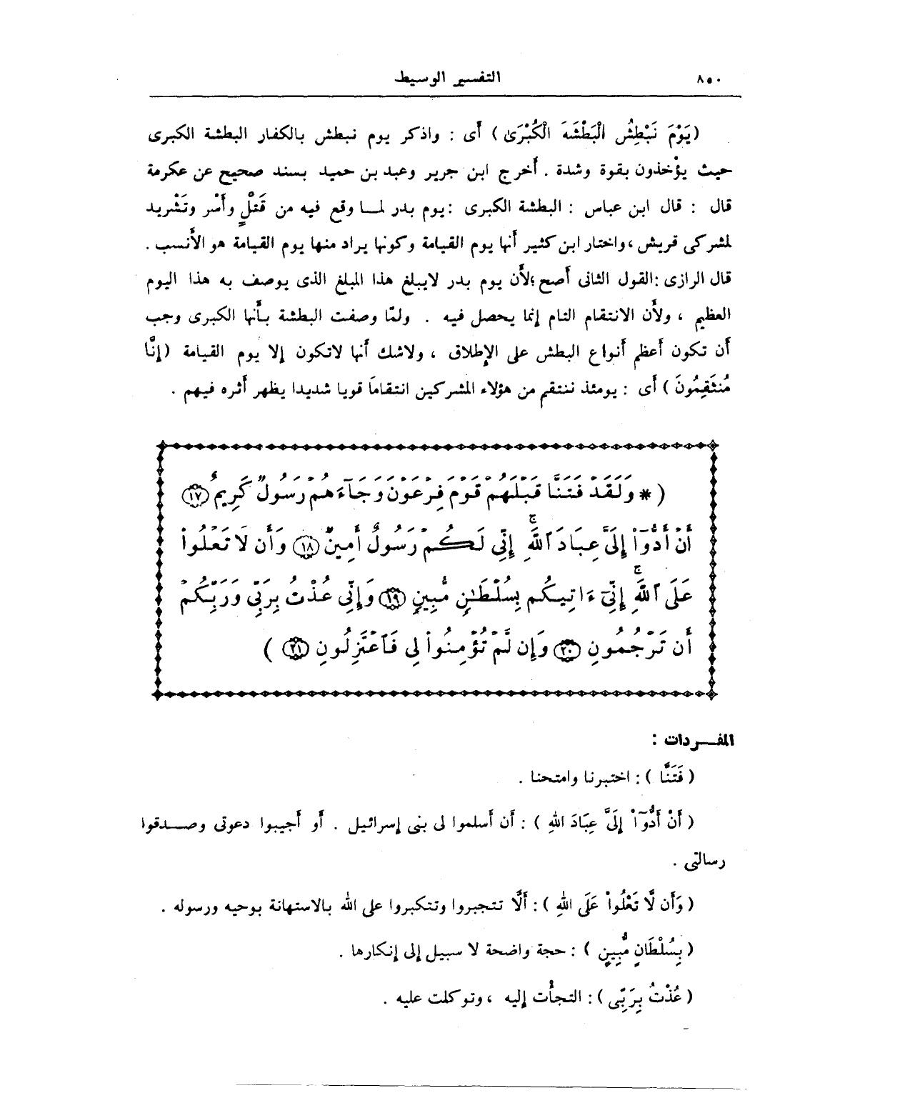 {وَلَقَدْ فَتَنَّا قَبْلَهُمْ قَوْمَ فِرْعَوْنَ وَجَاءَهُمْ رَسُولٌ كَرِيمٌ (17) أَنْ أَدُّوا إِلَيَّ عِبَادَ اللَّهِ إِنِّي لَكُمْ رَسُولٌ أَمِينٌ (18) وَأَنْ لَا تَعْلُوا عَلَى اللَّهِ إِنِّي آتِيكُمْ بِسُلْطَانٍ مُبِينٍ (19) وَإِنِّي عُذْتُ بِرَبِّي وَرَبِّكُمْ أَنْ تَرْجُمُونِ (20) وَإِنْ لَمْ تُؤْمِنُوا لِي فَاعْتَزِلُونِ}