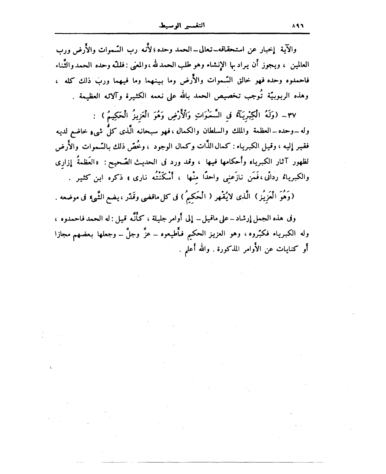 37 - {وَلَهُ الْكِبْرِيَاءُ فِي السَّمَاوَاتِ وَالْأَرْضِ وَهُوَ الْعَزِيزُ الْحَكِيمُ}: