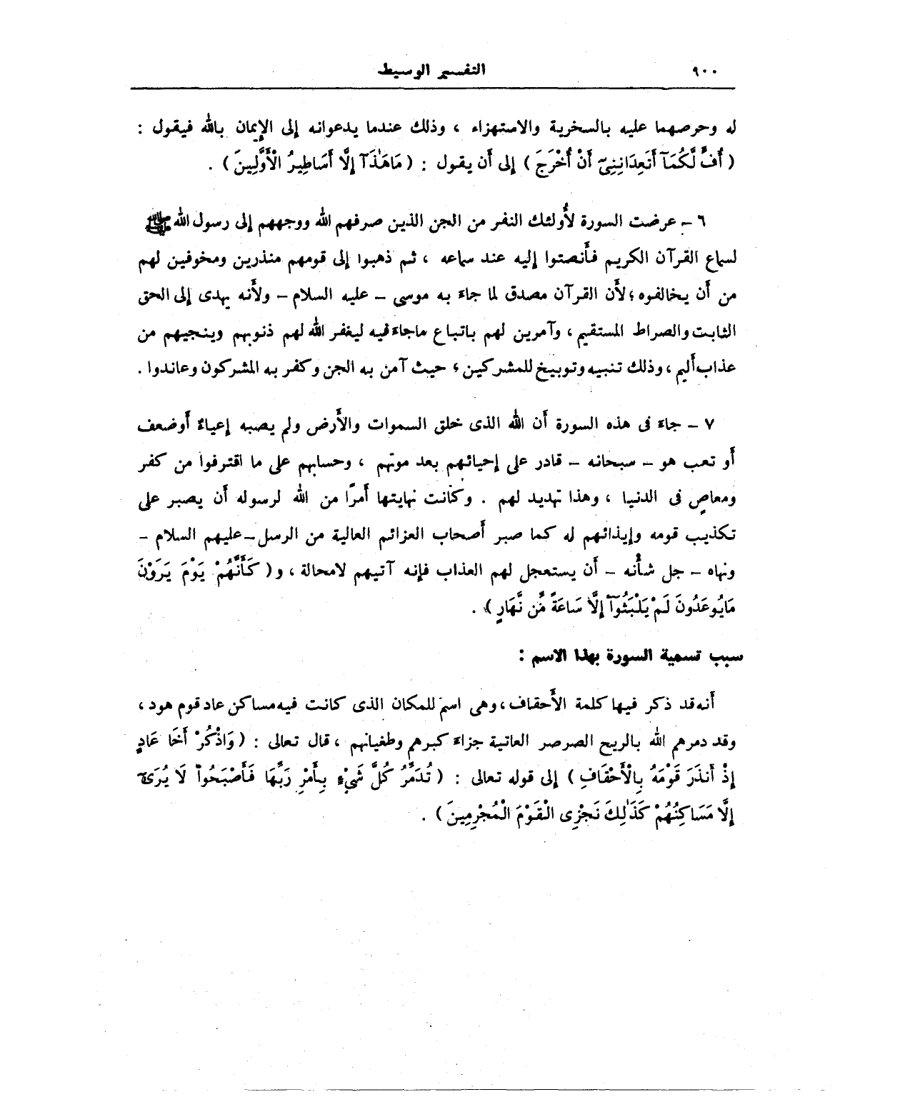 أنه قد ذكر فيها كلمة الأحقاف، وهي اسم للمكان الذي كانت فيه مساكن عاد قوم هود، وقد دمرهم الله بالريح الصرصر العاتية جزاء كبرهم وطغيانهم، قال تعالى: {وَاذْكُرْ أَخَا عَادٍ إِذْ أَنْذَرَ قَوْمَهُ بِالْأَحْقَافِ} إلى قوله تعالى: {تُدَمِّرُ كُلَّ شَيْءٍ بِأَمْرِ رَبِّهَا فَأَصْبَحُوا لَا يُرَى إِلَّا مَسَاكِنُهُمْ كَذَلِكَ نَجْزِي الْقَوْمَ الْمُجْرِمِينَ}.