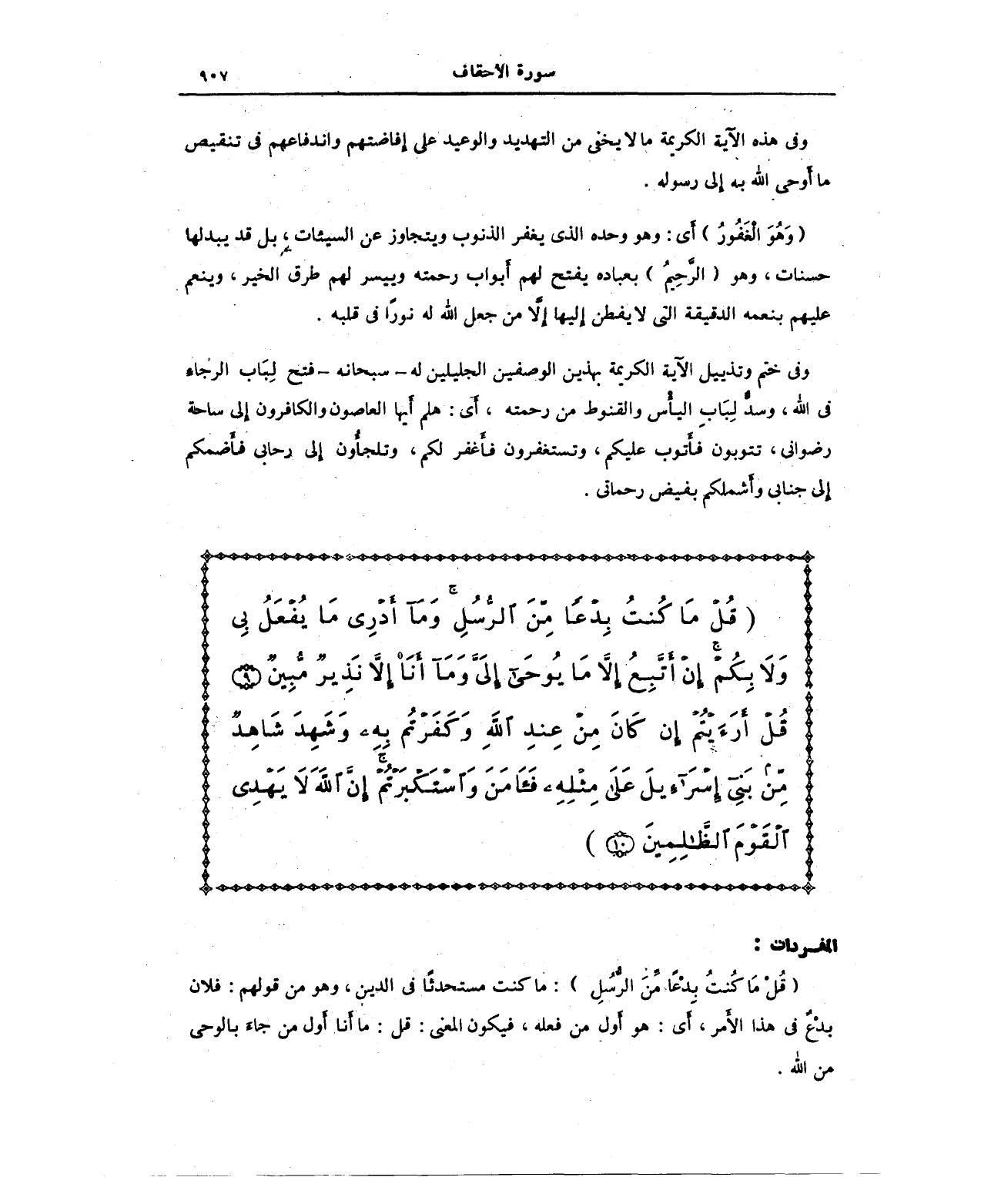 {قُلْ مَا كُنْتُ بِدْعًا مِنَ الرُّسُلِ وَمَا أَدْرِي مَا يُفْعَلُ بِي وَلَا بِكُمْ إِنْ أَتَّبِعُ إِلَّا مَا يُوحَى إِلَيَّ وَمَا أَنَا إِلَّا نَذِيرٌ مُبِينٌ (9) قُلْ أَرَأَيْتُمْ إِنْ كَانَ مِنْ عِنْدِ اللَّهِ وَكَفَرْتُمْ بِهِ وَشَهِدَ شَاهِدٌ مِنْ بَنِي إِسْرَائِيلَ عَلَى مِثْلِهِ فَآمَنَ وَاسْتَكْبَرْتُمْ إِنَّ اللَّهَ لَا يَهْدِي الْقَوْمَ الظَّالِمِينَ}.
