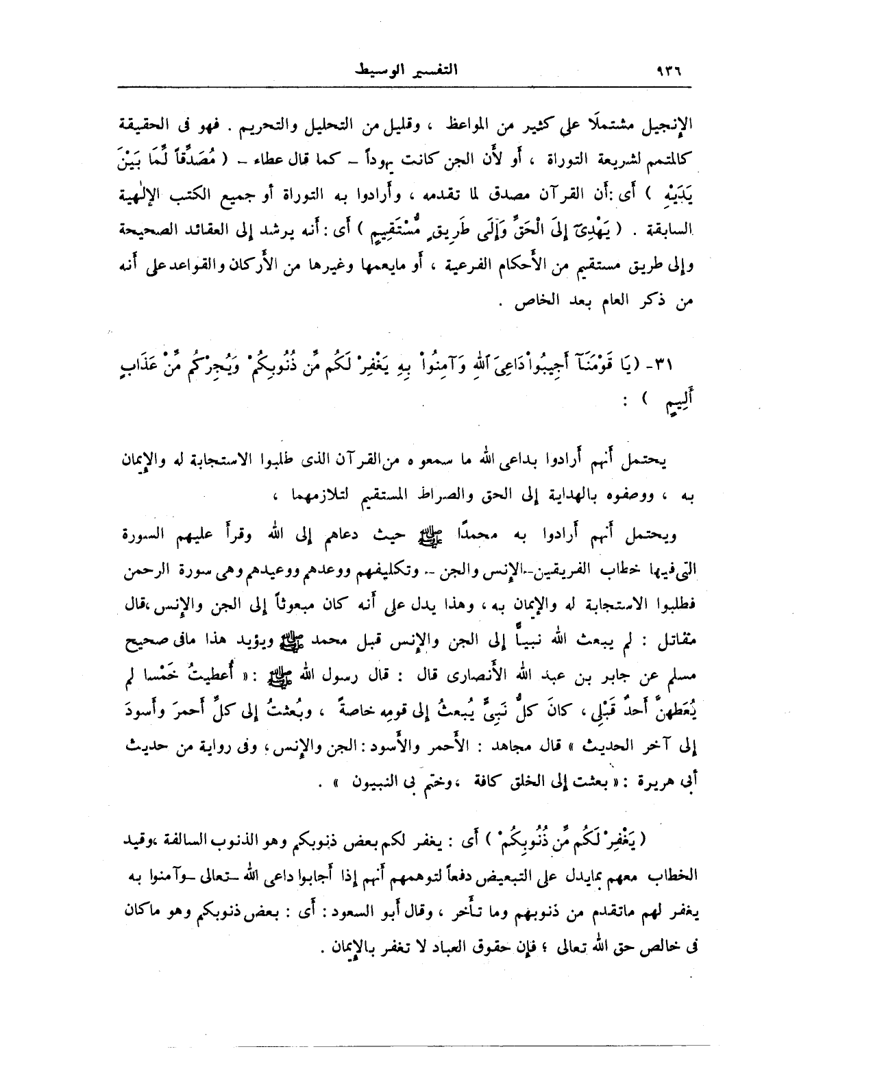 31 - {يَا قَوْمَنَا أَجِيبُوا دَاعِيَ اللَّهِ وَآمِنُوا بِهِ يَغْفِرْ لَكُمْ مِنْ ذُنُوبِكُمْ وَيُجِرْكُمْ مِنْ عَذَابٍ أَلِيمٍ}: