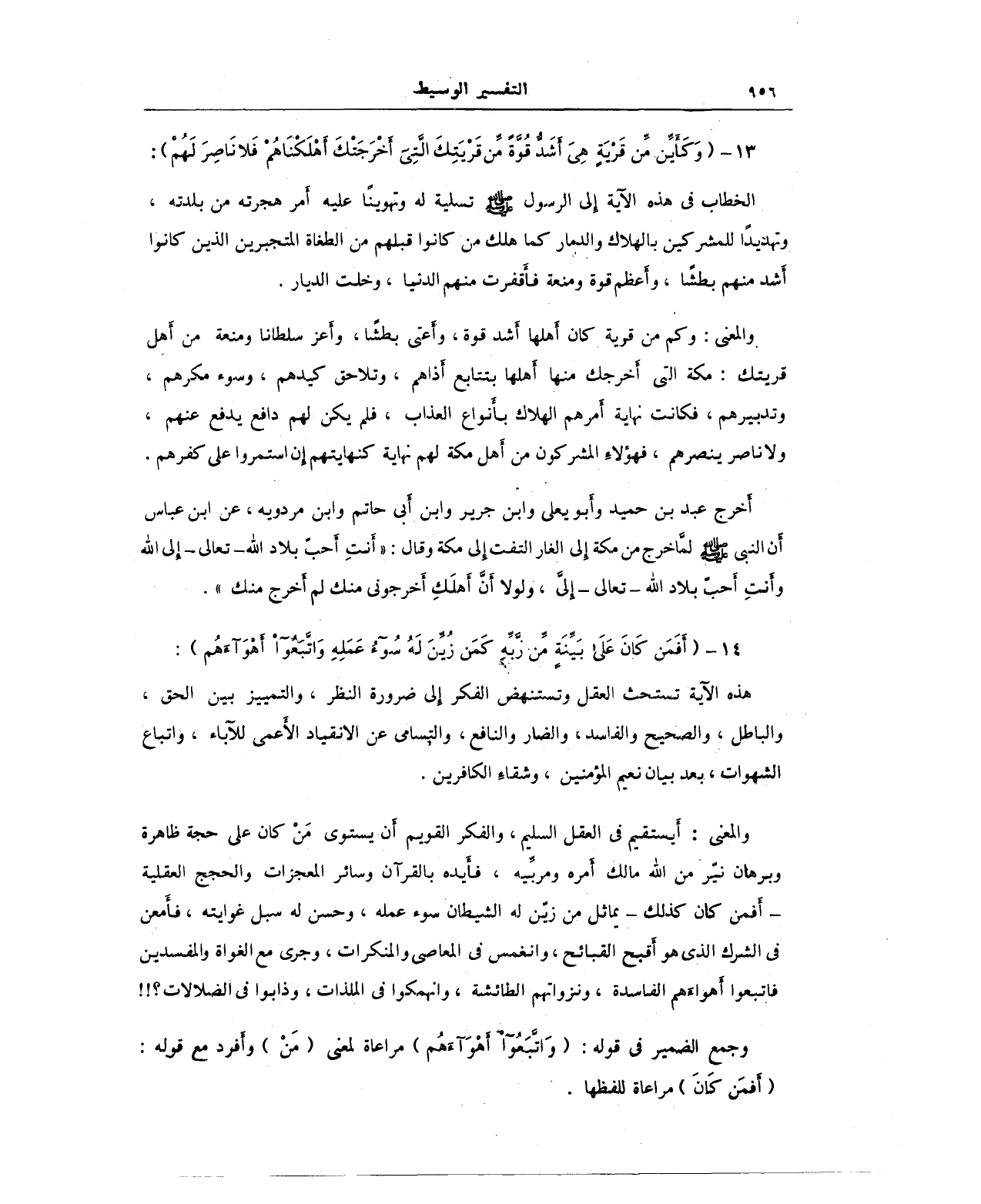 13 - {وَكَأَيِّنْ مِنْ قَرْيَةٍ هِيَ أَشَدُّ قُوَّةً مِنْ قَرْيَتِكَ الَّتِي أَخْرَجَتْكَ أَهْلَكْنَاهُمْ فَلَا نَاصِرَ لَهُمْ}: