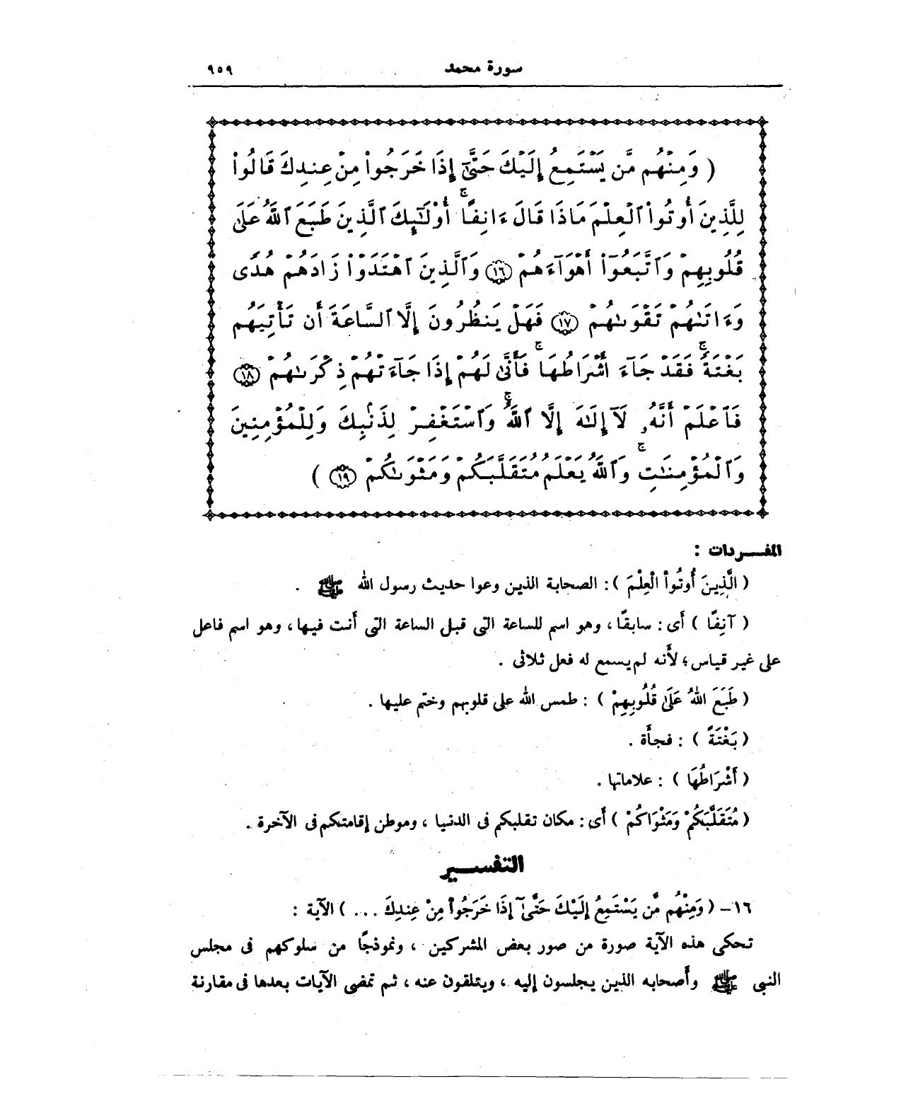 16 - {وَمِنْهُمْ مَنْ يَسْتَمِعُ إِلَيْكَ حَتَّى إِذَا خَرَجُوا مِنْ عِنْدِكَ ... } الآية:
