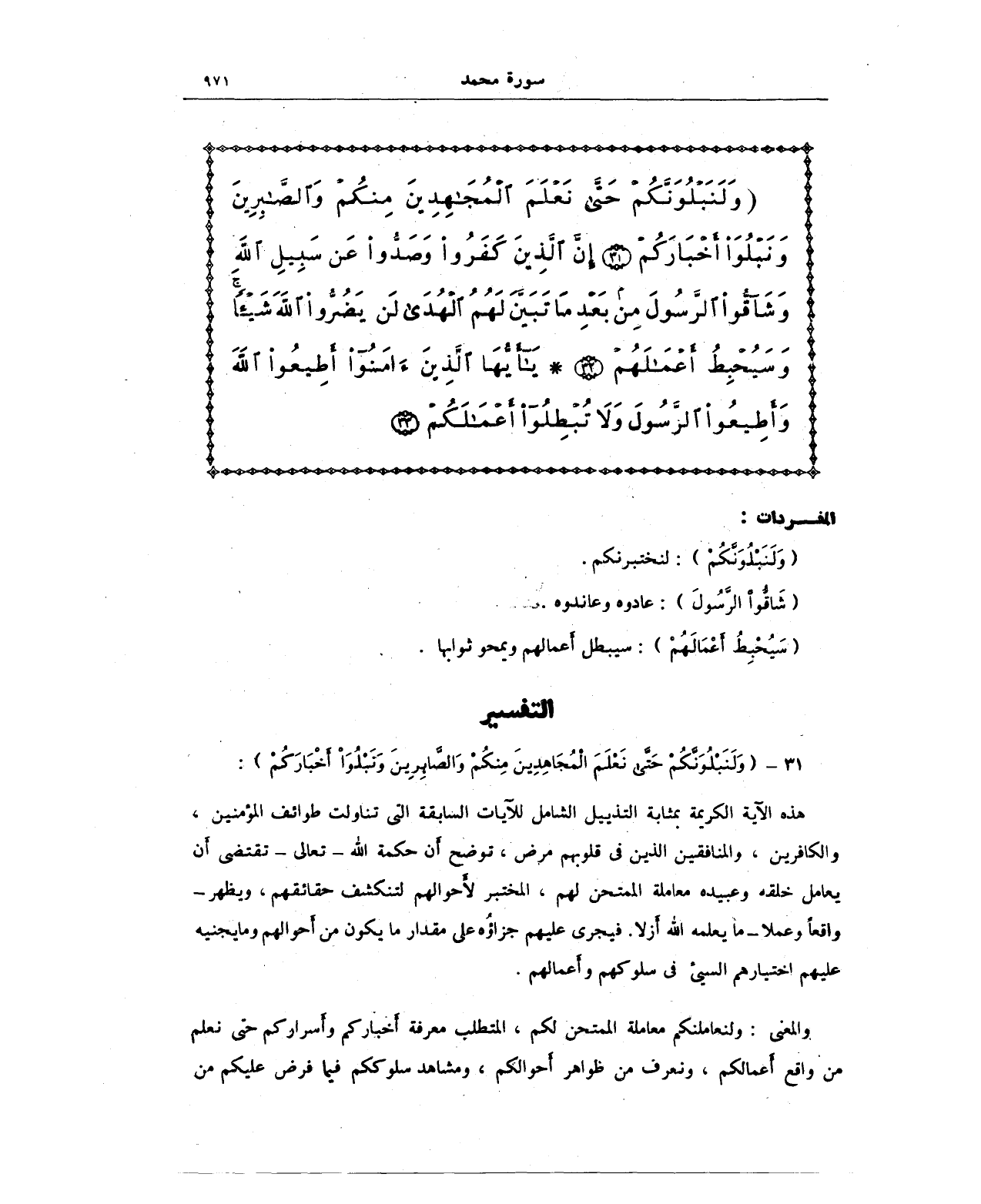 31 - {وَلَنَبْلُوَنَّكُمْ حَتَّى نَعْلَمَ الْمُجَاهِدِينَ مِنْكُمْ وَالصَّابِرِينَ وَنَبْلُوَ أَخْبَارَكُمْ}: