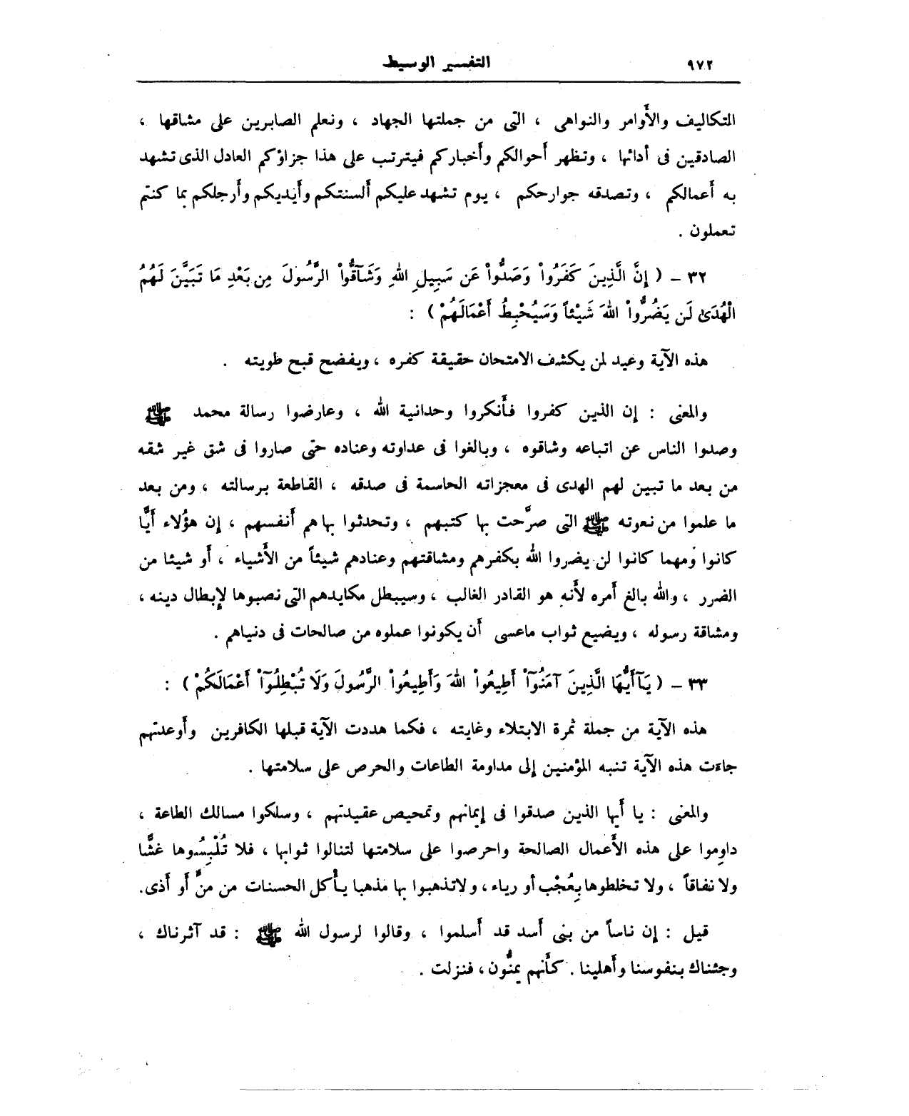 33 - {يَا أَيُّهَا الَّذِينَ آمَنُوا أَطِيعُوا اللَّهَ وَأَطِيعُوا الرَّسُولَ وَلَا تُبْطِلُوا أَعْمَالَكُمْ}: