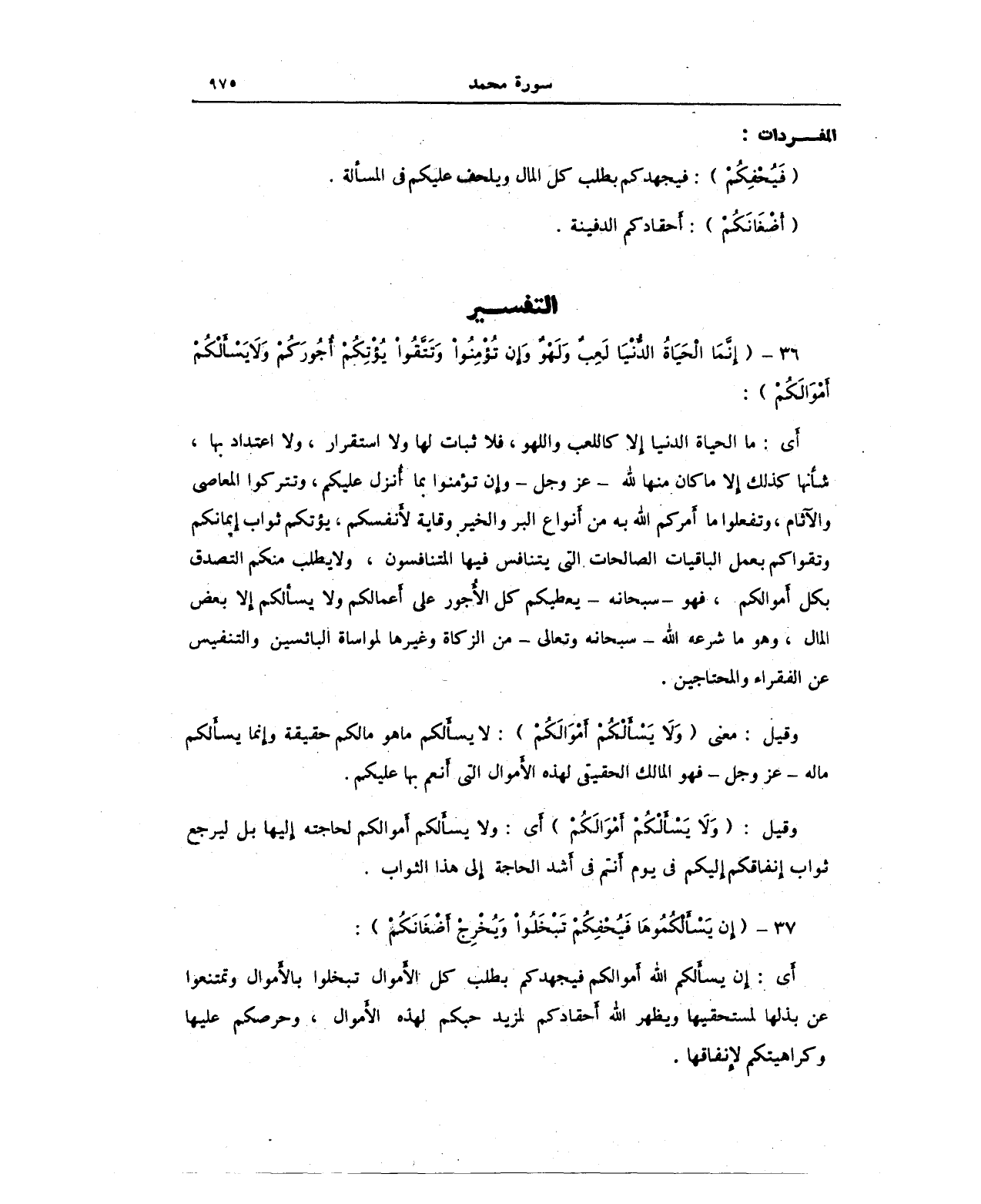 37 - {إِنْ يَسْأَلْكُمُوهَا فَيُحْفِكُمْ تَبْخَلُوا وَيُخْرِجْ أَضْغَانَكُمْ}: