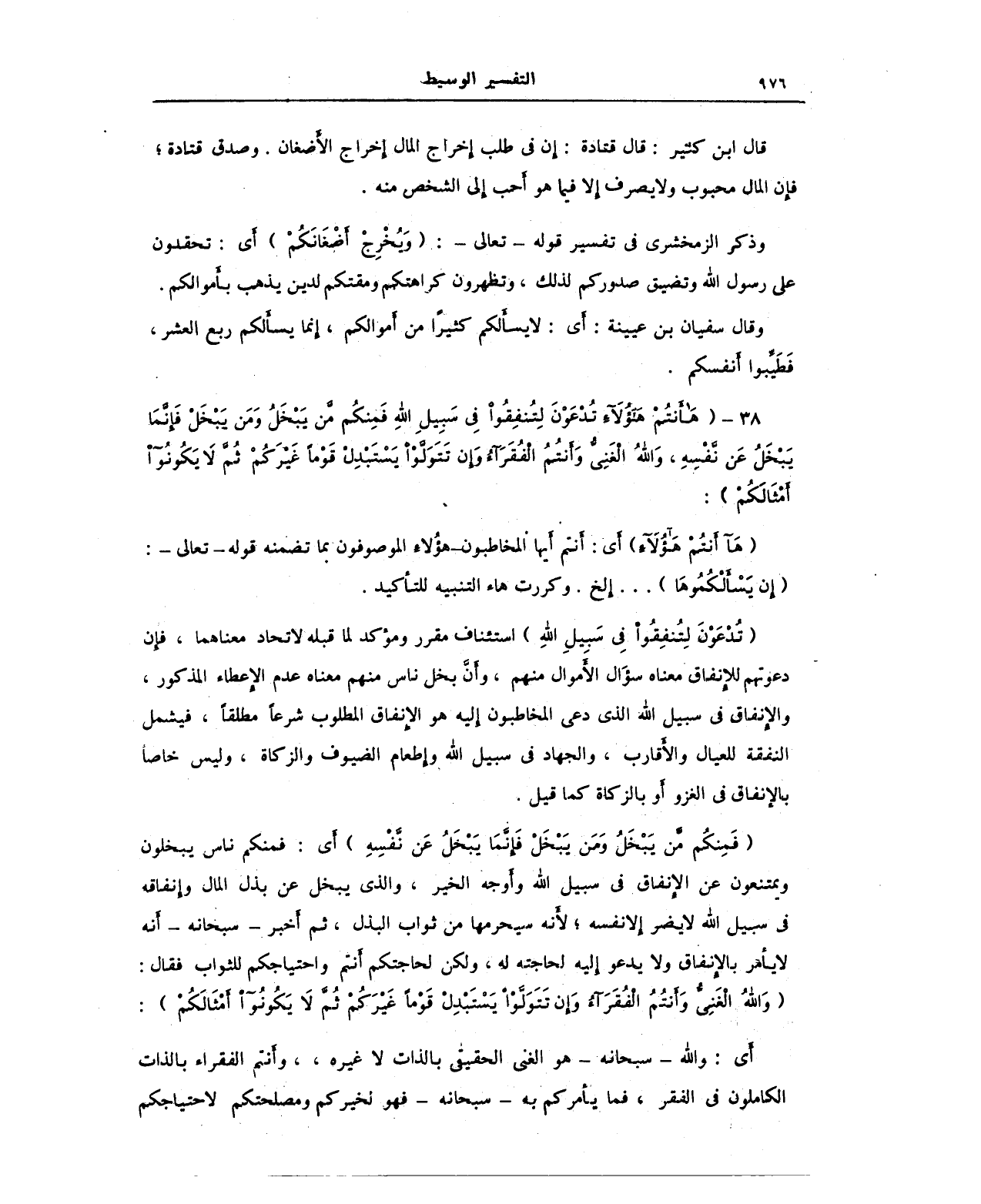 38 - {هَا أَنْتُمْ هَؤُلَاءِ تُدْعَوْنَ لِتُنْفِقُوا فِي سَبِيلِ اللَّهِ فَمِنْكُمْ مَنْ يَبْخَلُ وَمَنْ يَبْخَلْ فَإِنَّمَا يَبْخَلُ عَنْ نَفْسِهِ وَاللَّهُ الْغَنِيُّ وَأَنْتُمُ الْفُقَرَاءُ وَإِنْ تَتَوَلَّوْا يَسْتَبْدِلْ قَوْمًا غَيْرَكُمْ ثُمَّ لَا يَكُونُوا أَمْثَالَكُمْ}: