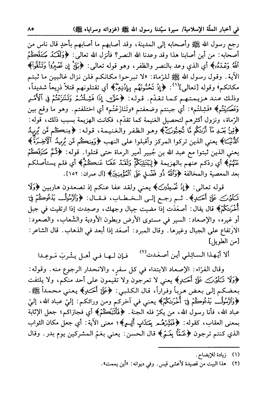 قوله تعالى : إذ تصعدون يعنى ولقد عفا عنكم إذ تصعدون هاربين ولا تلوون على أحد . ثم رجع إلى الخطاب ، فقال : " والرسول يدعوكم في أخراكم " قال يقال : أصعدت إذا مضيت حيال وجهك ، وصعدت إذا ارتقيت في جبل أو غيره ، والإصعاد : السير في مستوى الأرض وبطون الأودية والشعاب ، والصعود : الارتفاع على الجبال وغيرها . وقال المبرد : أصعد إذا أبعد في الذهاب .
