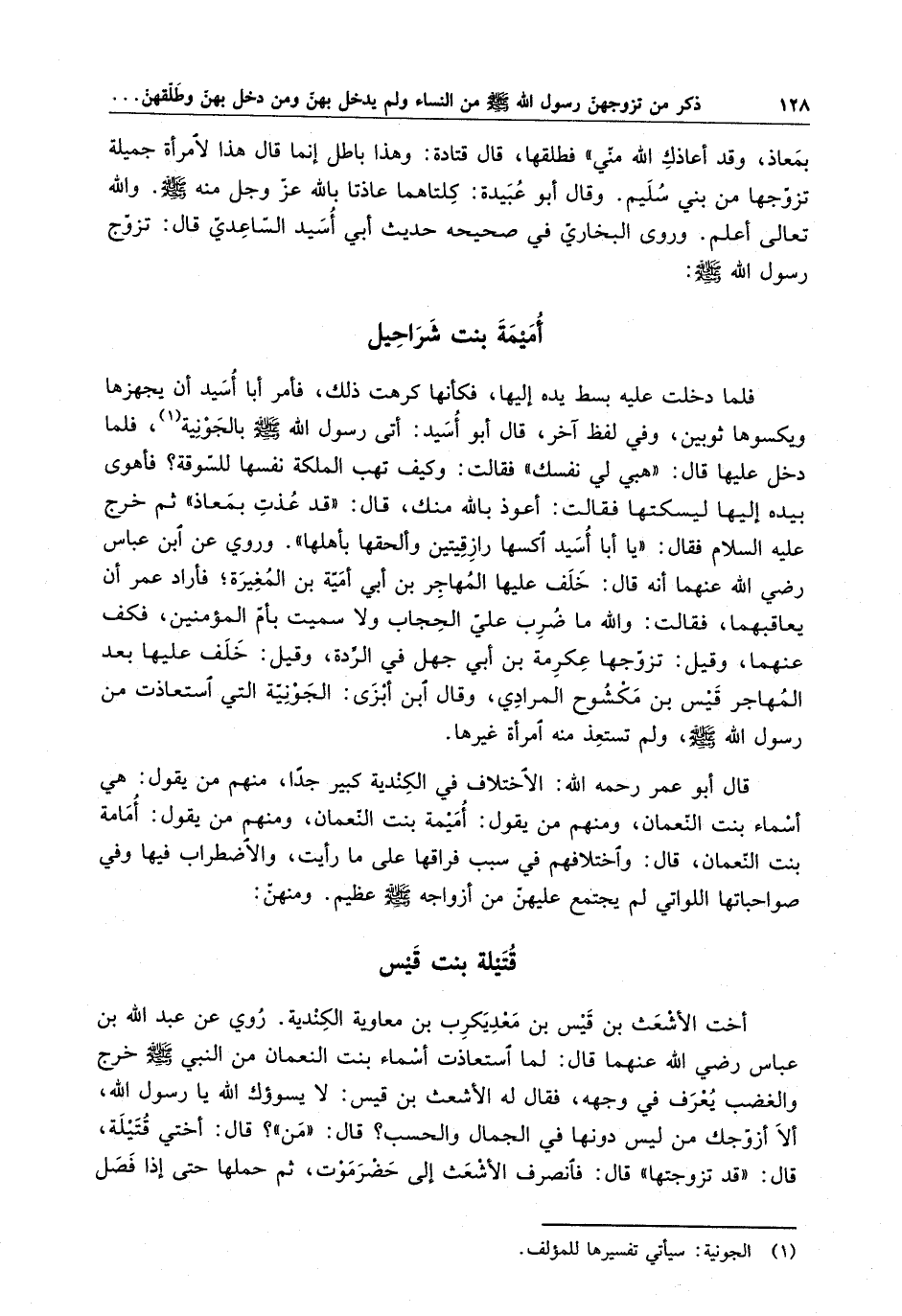 بمعاذ ، وقد أعاذك الله مني " فطلقها ، قال قتادة : وهذا باطل إنما قال هذا لامرأة جميلة تزوجها من بني سليم . وقال أبو عبيدة : كلتاهما عاذتا بالله عز وجل منه ( صلى الله عليه وسلم ) . والله تعالى أعلم . وروى البخاريّ في صحيحه حديث أبي أسيد الساعدي قال : تزوج رسول الله ( صلى الله عليه وسلم ) :